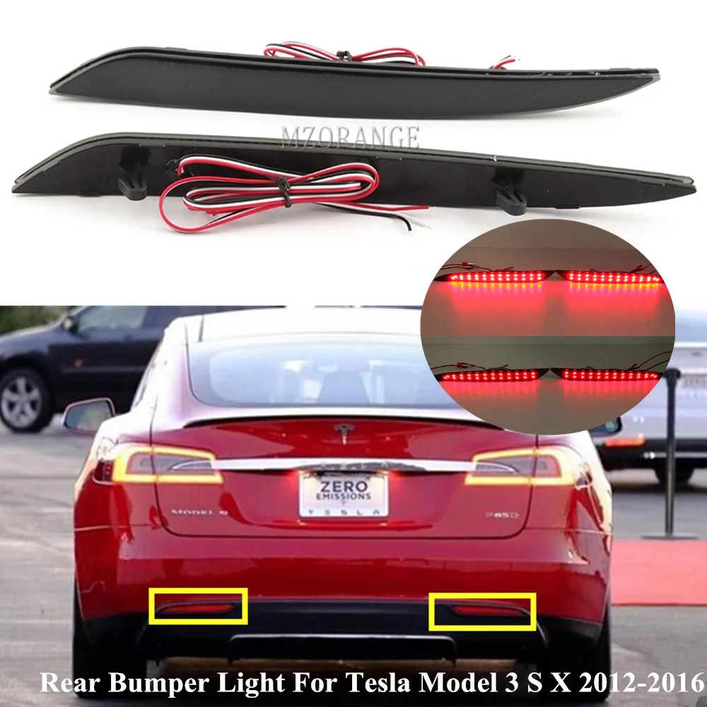 2PCS LED Rear Bumper Light For Tesla Model 3 S X 2012-2016 Rear Reflector Tail Brake Stop Light Fog Lamp Turn Signal Light