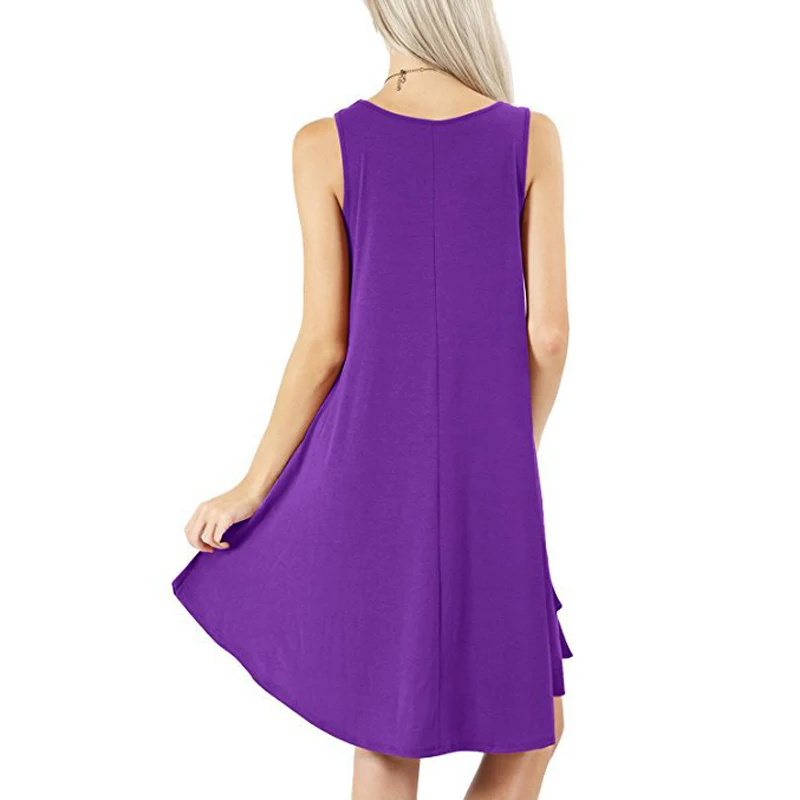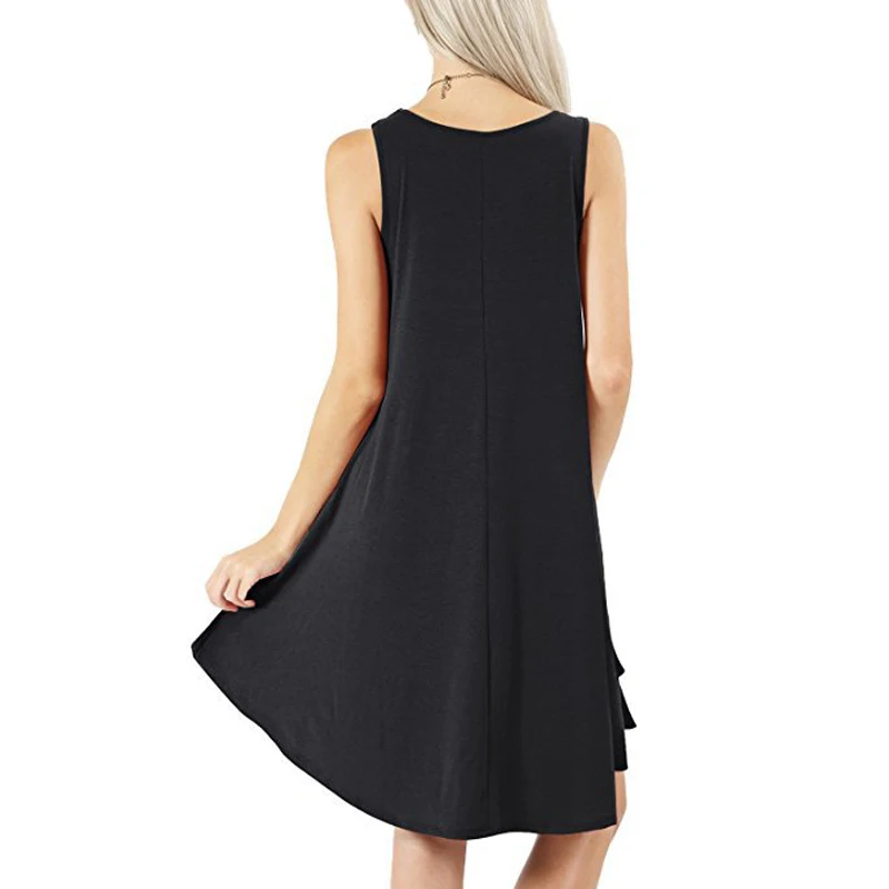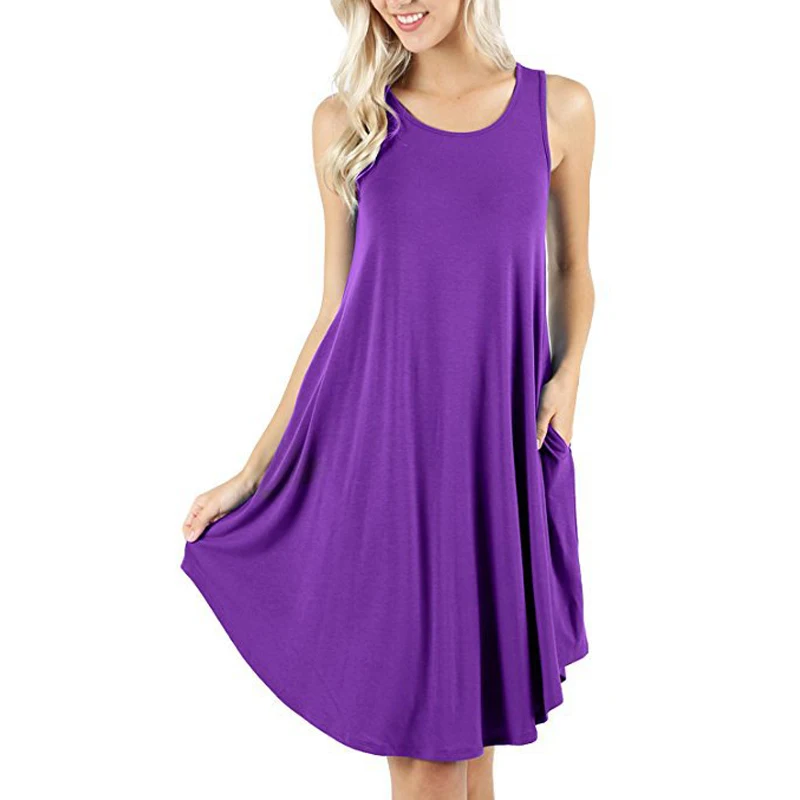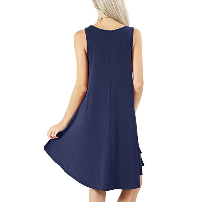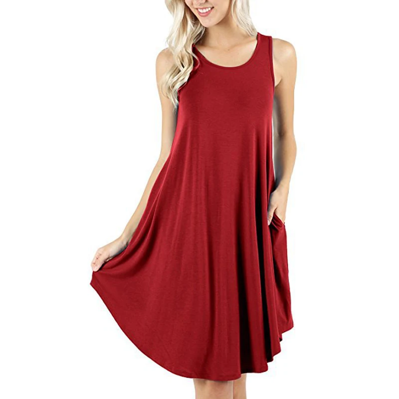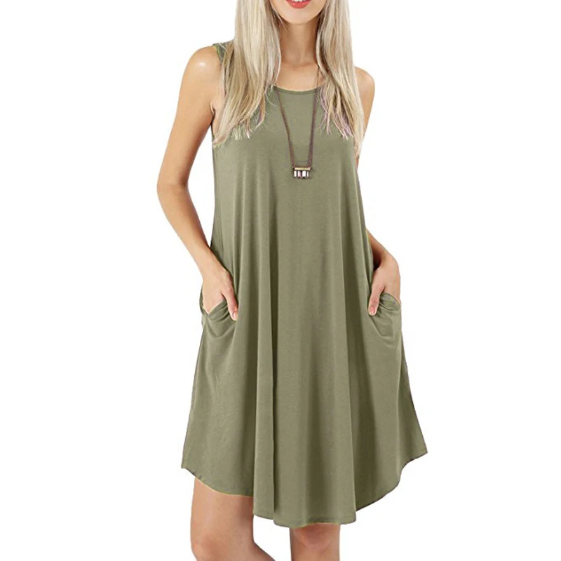 Наименование товара: летняя одежда для женщин; Повседневное платье с круглым вырезом; Однотонное свободное платье размера плюс; Женская одежда; Сексуальное платье без рукавов с карманами; Сарафан до колена