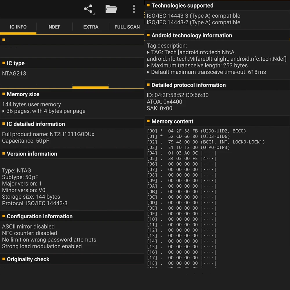 Чип: подлинный Ntag213