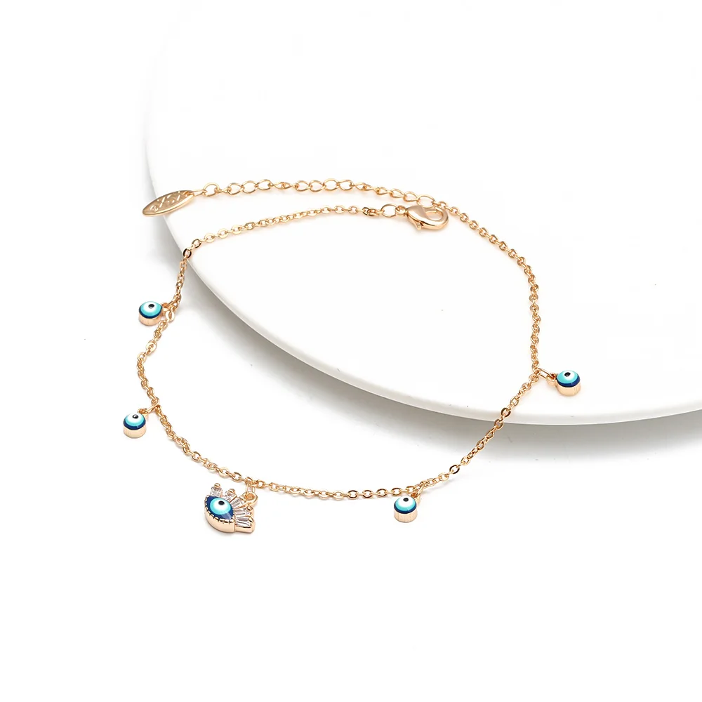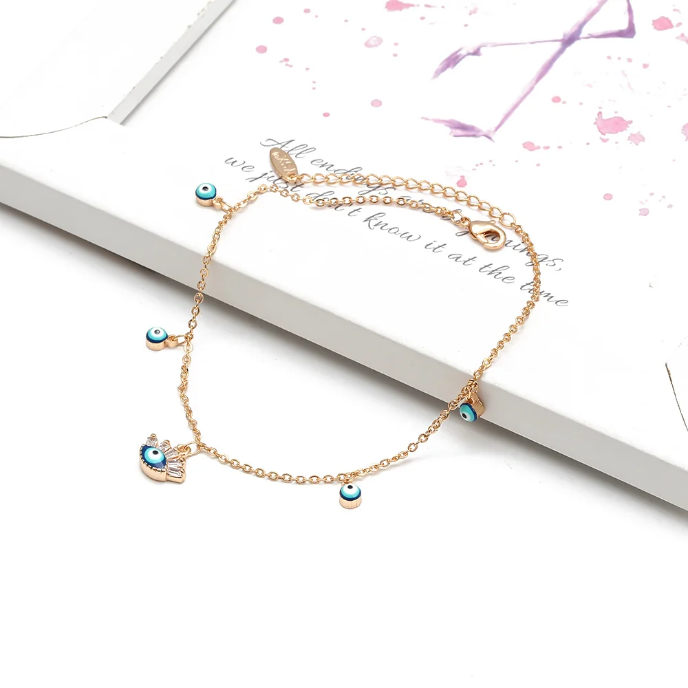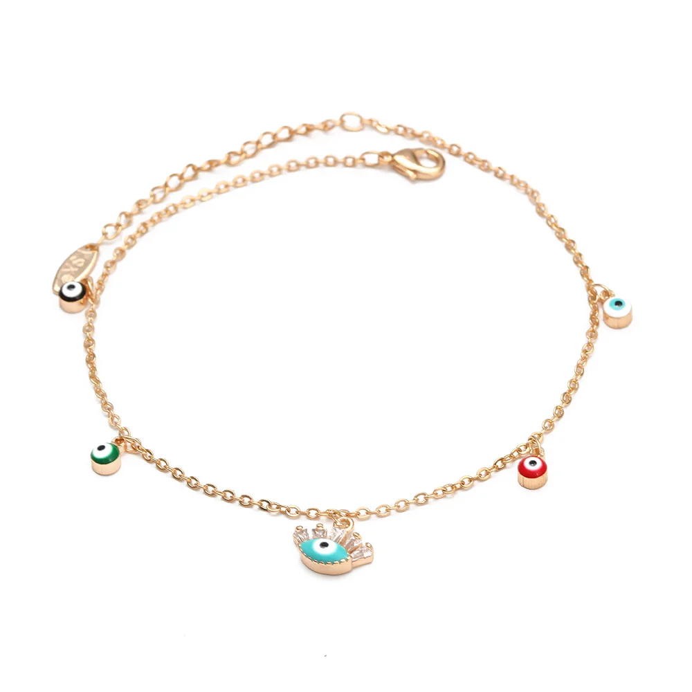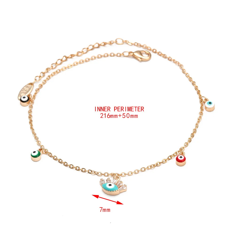 Браслет на лодыжку с шармами «сглаза» золотистый/серебристый, регулируемый