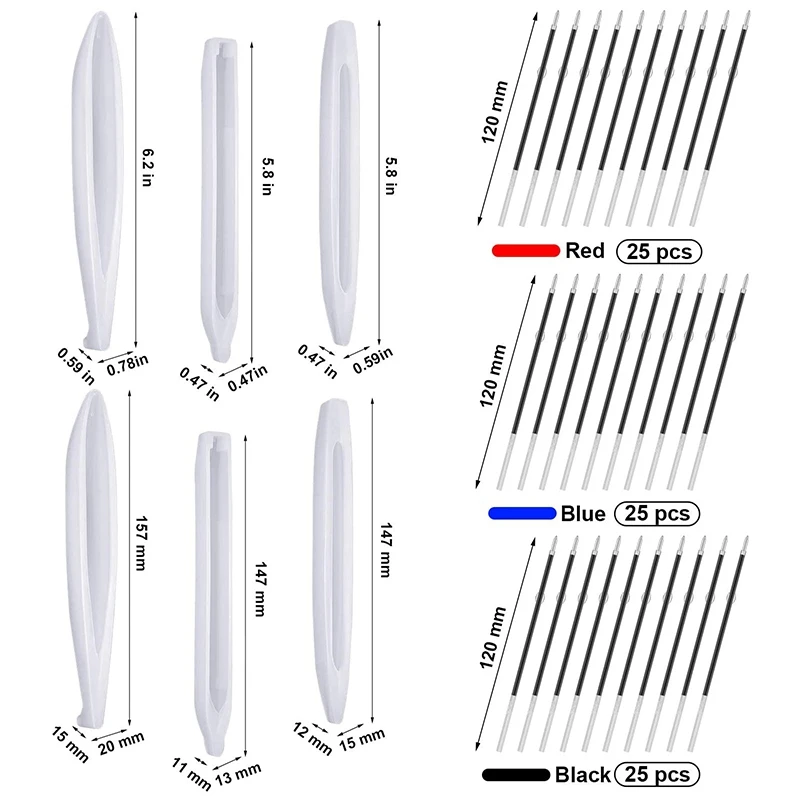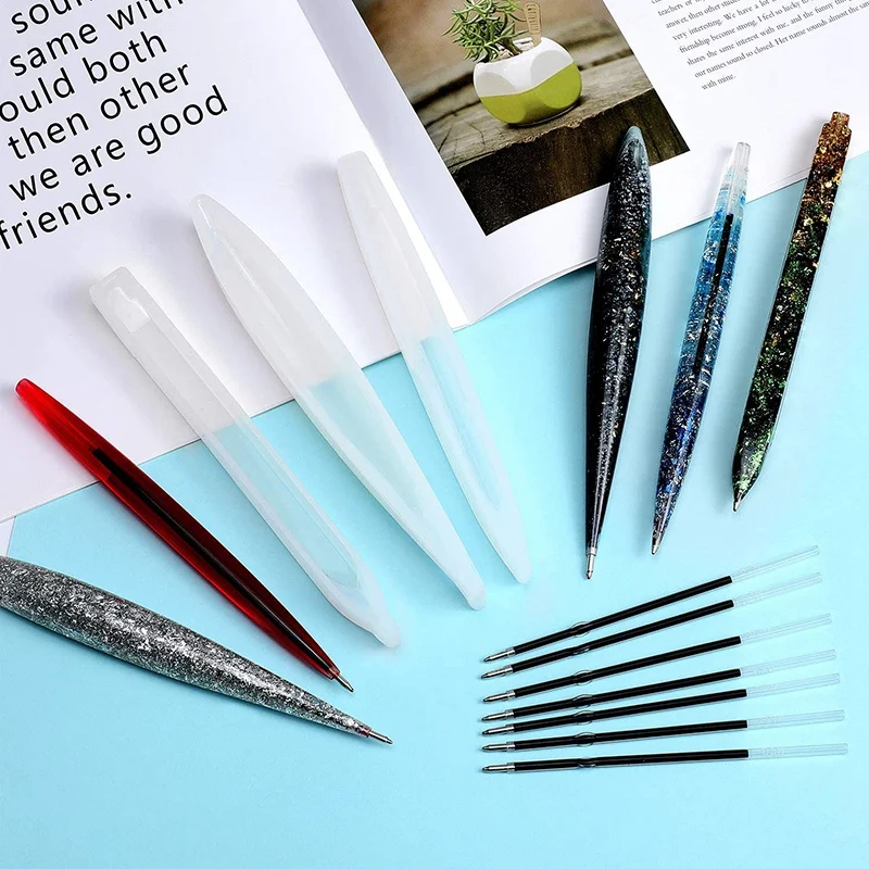 Надежный материал: форма для литья шариковой ручки изготовлена из силикона, который является гибким, прочным и многоразовым, может сделать изделия из смолы прозрачными и гладкими, их легко чистить и хранить, подходит для длительного использования, заправка ручки практична для письма и рисования