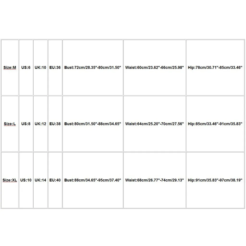 Размер: M US:6 UK:10 EU:36 Бюст: 72 см/28,35 ''-80 см/31,50'' Талия: 60 см/23,62 ''-66 см/25,98'' бедра: 78 см/30,71 ''-85 см/33,46'' Размер: L US:8 UK:12 EU:38 бюст: 80 см/31,50 ''-88 см/34,65'' талия: 64 см/25,20 ''-70 см/27,56'' бедра: 85 см/33,46 ''-91 см/35,83'' Размер: XL US:10 UK:14 EU:40 бюст: 88 см/34,65 ''-95 см/37,40'' Талия: 68 см/26,77 ''-74 см/29,13'' бедра: 91 см/35,83 ''-97 см/38,19''