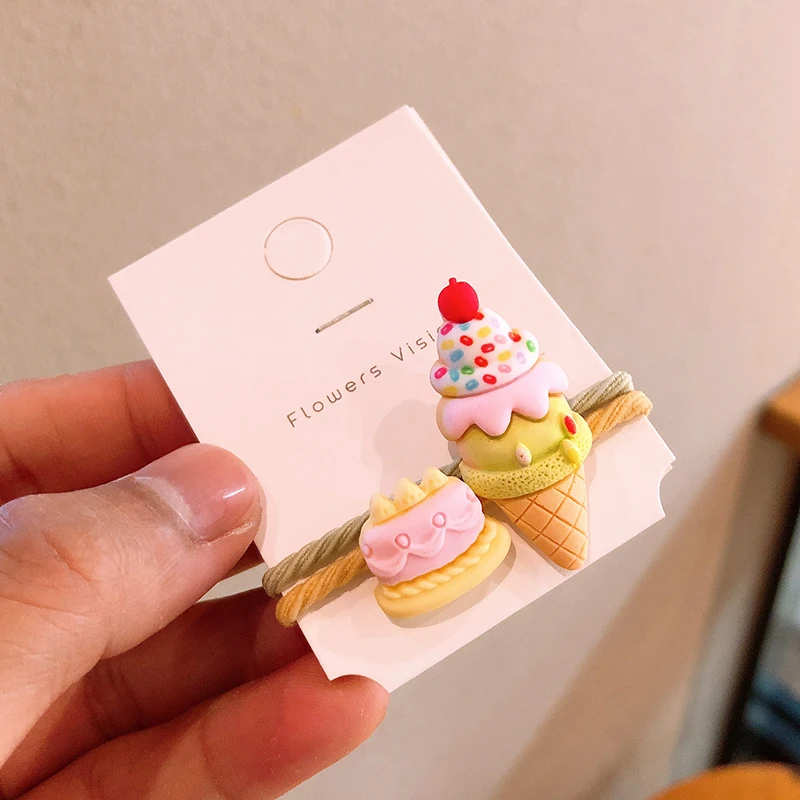 2 шт., Детские эластичные повязки для волос с милым мороженым и пончиком, Детские веревки, аксессуары для девочек, детский головной убор, головной убор принцессы