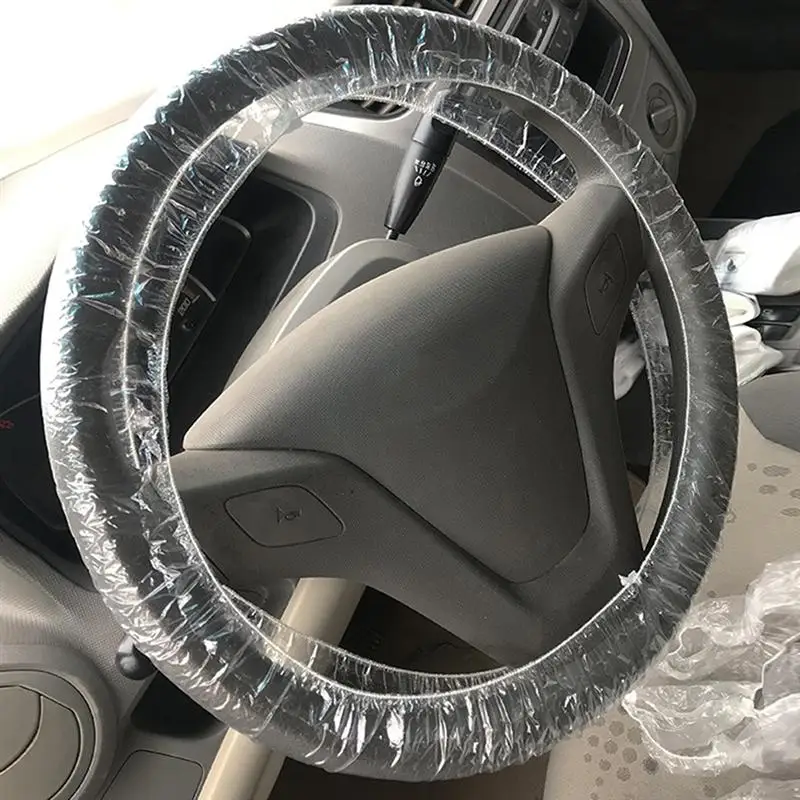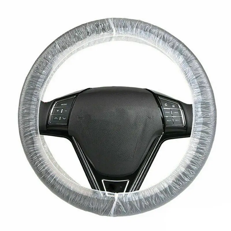 100PCS Disposable Car Steering Wheel Cover Plastic Elastic Pull Handle Sleeve Protector Cover for Car Auto (White)