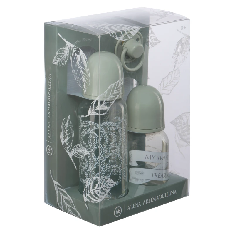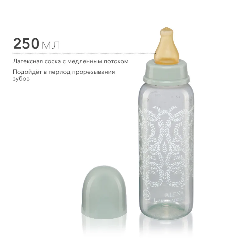 Набор для кормления, разработанный совместно с Алёной Ахмадуллиной, объединил в себе практичность вещей Happy Baby и неповторимый стиль именитого дизайнера. Бутылочка 150 мл подходит для новорожденных – соска с медленным потом приближает процесс кормления из бутылочки к физиологическому. Бутылочка 250 мл с латексной соской подойдет для подросшего крохи в период прорезывания зубов – мягкий латекс идеален для правильного развития ротовой полости. Бутылочки оснащены герметичными крышками – удобно брать на прогулку. Латексная соска-пустышка ортодонтической формы помогает формированию правильного прикуса.