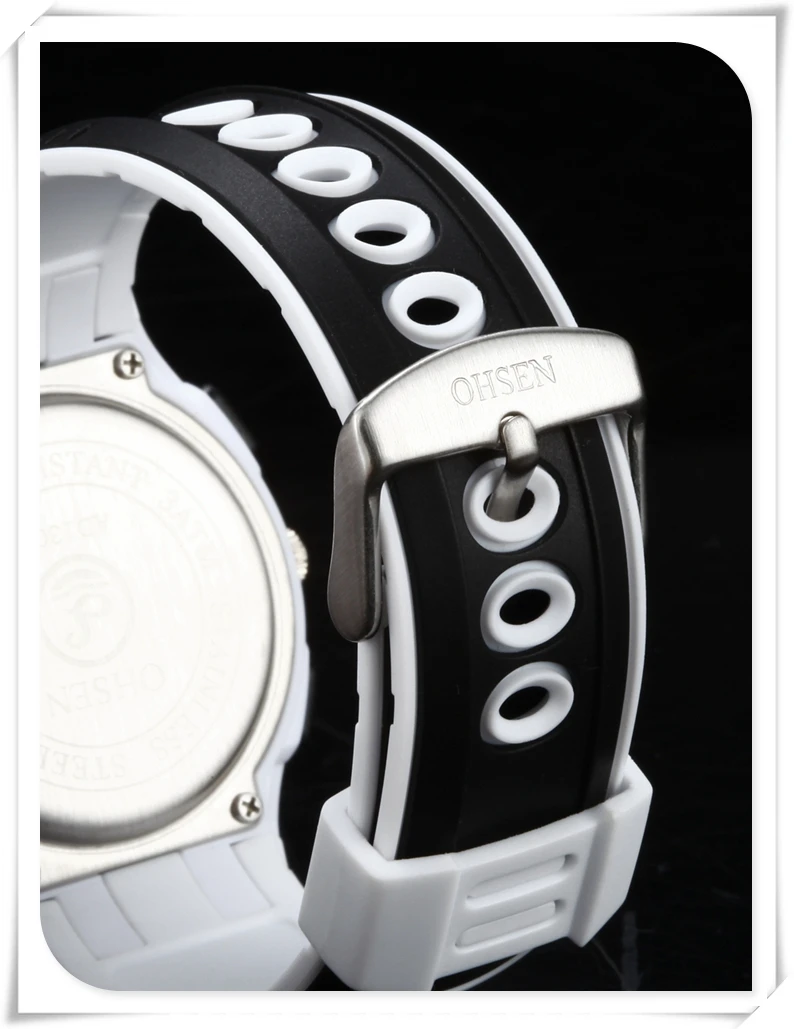 Характеристики: -Бренд: OHSEN -Применимые модели: OHSEN brand AD1309 Style -Высококачественные Ремешки для наручных часов -Состояние: Новое без бирки -Материал ремешка: Резина -Застежка: Пряжка из нержавеющей стали -Общая ширина соединения ремешка: 20 мм -Длина ремешка: около 23 см (9,06 дюйма) -Доступная лента для ношения Длина (не включая диаметр циферблата): 16,00-22,00 см