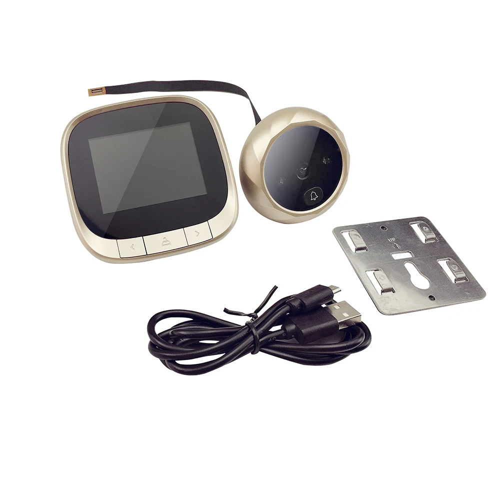 Материал: АБС-пластик Номер модели: DD3 Дисплей: 2,4 дюйма ЖК-дисплей экран Пиксели камеры: 0.3MP Разрешение: 320*240 ИК-лампы: 2 шт., 850нм Память: встроенная циклическая память Размеры: Внутренняя часть: 80*80*16 мм Наружный: 58*13 мм Толщина двери: 35 мм-120 мм Размер монтажного отверстия: 14-28 мм Цвет: черный Посылка список: 1 * Внутренняя часть 1 * Наружная часть 1 * умственный баркет 1 * Руководство по эксплуатации 3 * винты