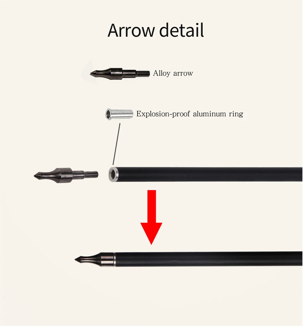 Параметры: Длина вала: 80 см/31 дюймов Внешний диаметр: 8 мм Внутренний диаметр: 6,2 мм Вал Материал: стекловолокно Перо Материал: Резина Цвет пера: 2 черный 1 белый Стрелка: Сменная Наконечник Вес: 100gn Для: 30-60 фунтов бант Пользователь Обратите внимание: Не прижимайте к бетонной стене или любому твердому веществу. Это может повредить стрелки. Используется для: охоты на взрослых, наружной съемки, соревнований Особенности: 1. Конструкция интерполяции используется для хвоста стрелки, которая более прочная и не легко отпадает 2. Стрелку можно заменить и установить алюминиевое основание, чтобы уменьшить повреждение вала стрелки и увеличить время использования стрелки.