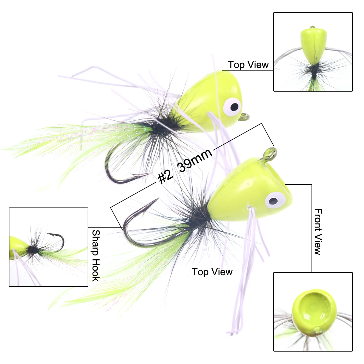 Bimoo 10 шт. #2 приманка для ловли нахлыстом попперов Поппер для ловли басов Bluegill белый красный черный оранжевый