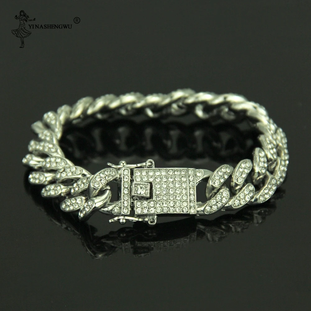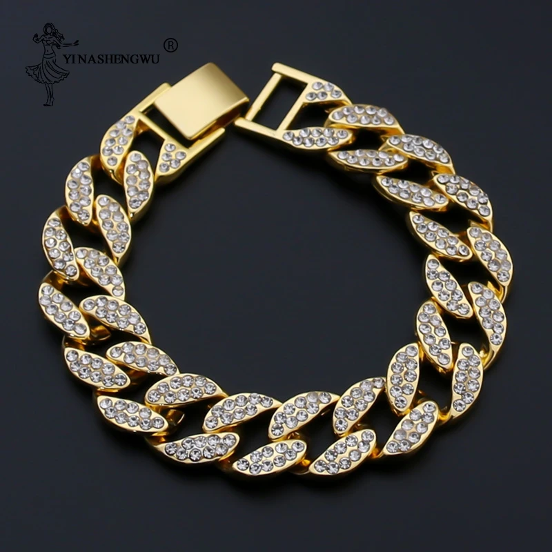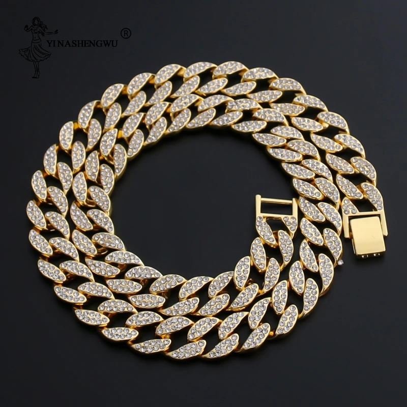 Комплект из 2 предметов в стиле хип-хоп, ожерелье с кубинской цепочкой, 13-15 мм, позолоченные стразы с кубическим цирконием, ювелирное изделие для мужчин
