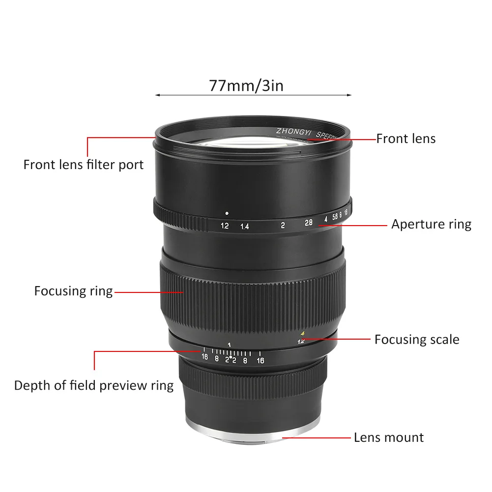 1. Светосильные средне-телеобъектив с фиксированным фокусным расстоянием, использует Цельнометаллический корпус объектива, кольцо диафрагмы, фокусировочное кольцо и крепление материал для портретной съемки и модной фотографии.
