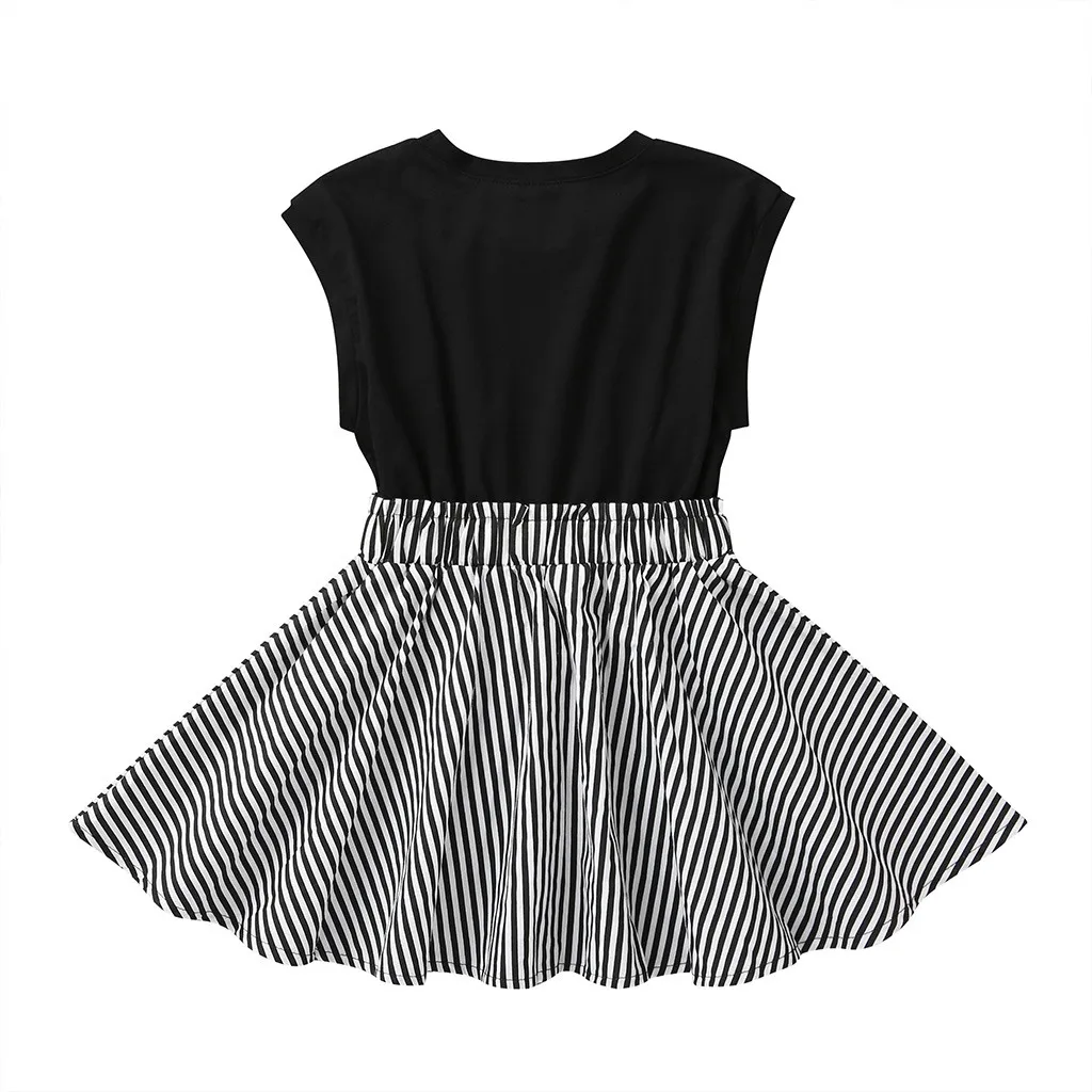 Летнее платье для девочек модное простое хлопковое платье в полоску без рукавов с буквенным принтом одежда черного цвета платье 50 *