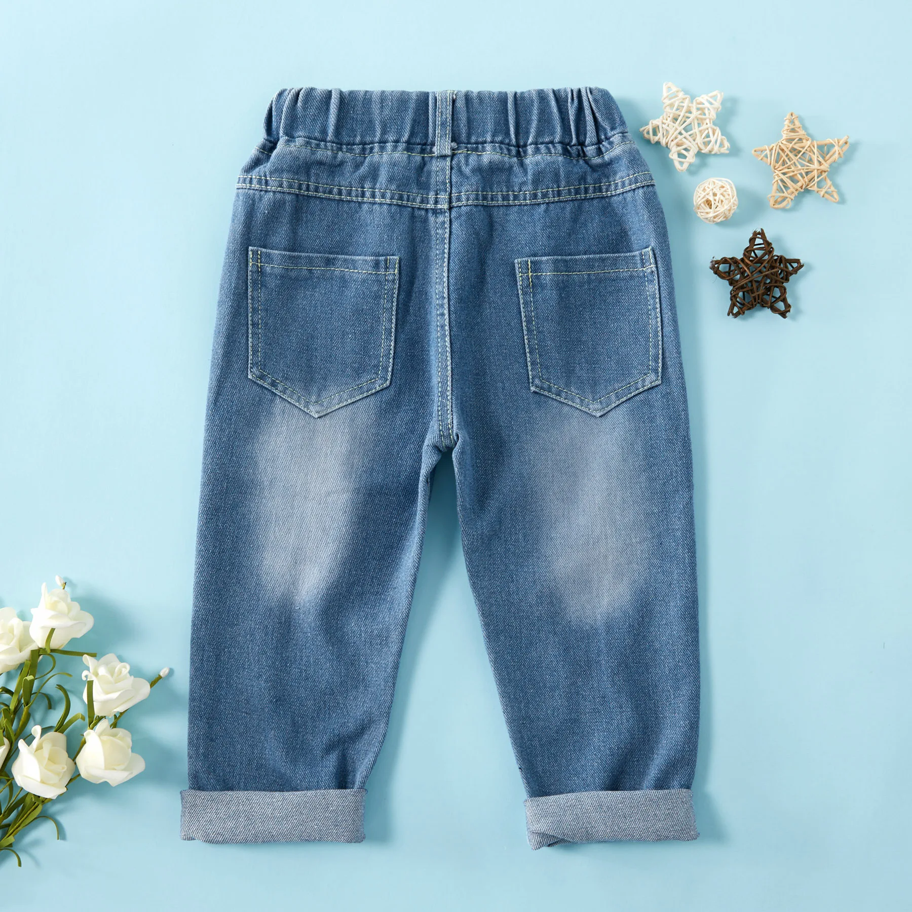Джинсы для мальчиков с принтом звезд прямые джинсы эластичной резинкой на талии