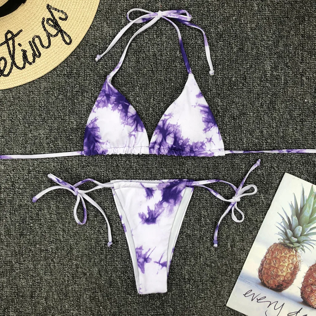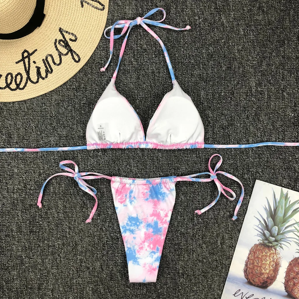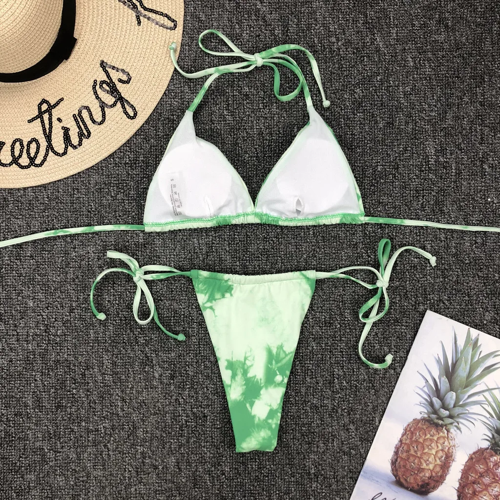 Градиентный купальный костюм с галстуком-краской, бикини 2020, бандаж, пуш-ап, комплект бикини, купальник с высокой посадкой, женский купальник с лямкой на шее, купальный костюм # F5