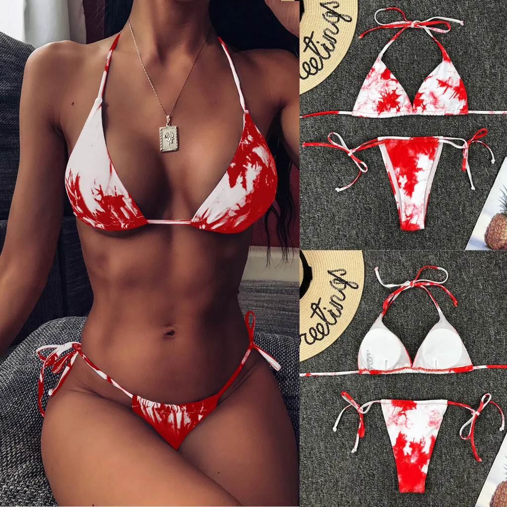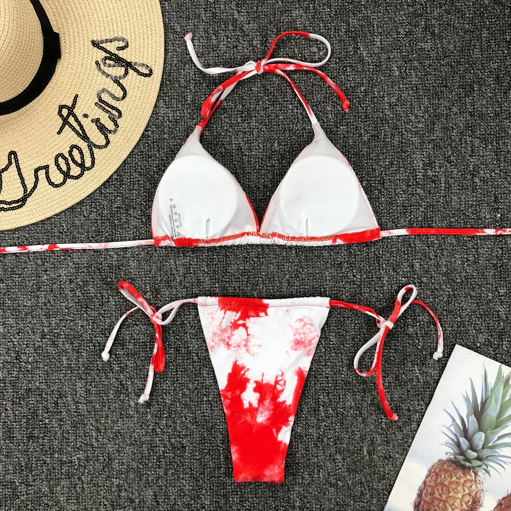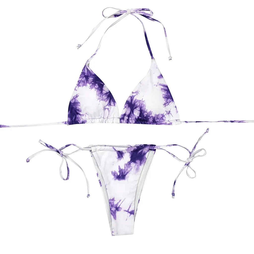 Градиентный купальный костюм с галстуком-краской, бикини 2020, бандаж, пуш-ап, комплект бикини, купальник с высокой посадкой, женский купальник с лямкой на шее, купальный костюм # F5