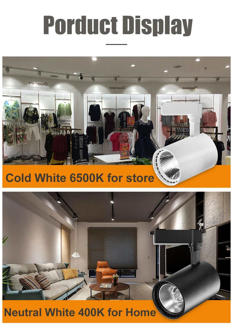 ★Вт: 12 Вт 20 Вт 30 Вт 40 Вт ★Использование чипа: COB ★Частота: 50/60 Гц ★Материал: твердый алюминий ★Вход Напряжение: AC220V/230V/240V ★Светильник Цвет корпуса: черный/белый ★Цветовая температура: 3000K 4000K 6500K ★Посылка: 1 шт. светодиодная направляющая, не набор из 3 предметов, не включая рельсы. ★Примечание: всю систему можно купить в нашем магазине, включая рельсы и разъемы.