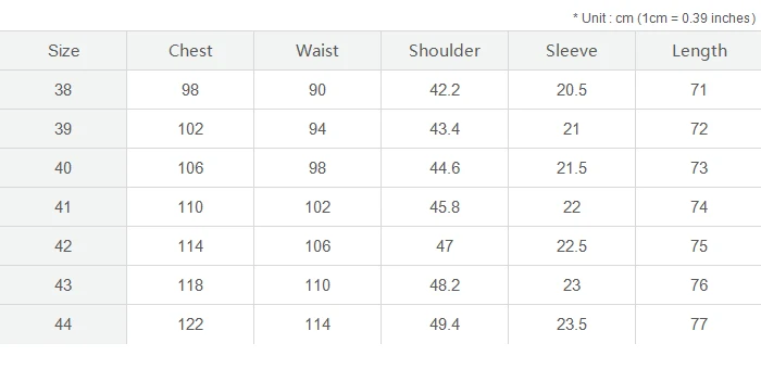 2) Как правило, размер рубашки должен быть больше вашего размера. Вы можете проверить свою обычную рубашку. Если обхват груди 100 см, мы предлагаем вам выбрать рубашку с 104 см или 108 см.