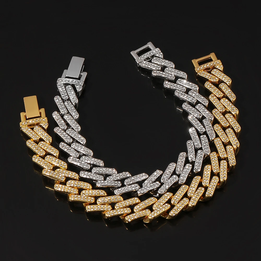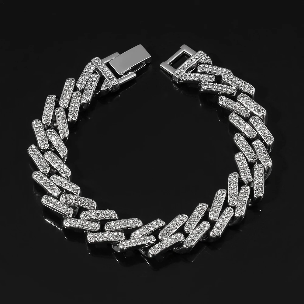 Сверкающие Стразы в стиле хип-хоп, толстый браслет-цепочка, панк, Майами, кубинский браслет, мужские и женские ювелирные изделия, аксессуары, подарок