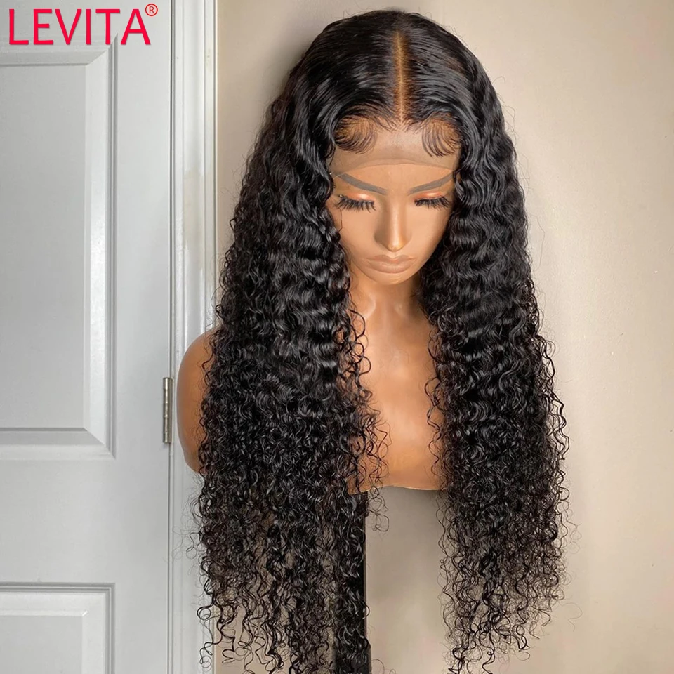 LEVITA афро кудрявые человеческие волосы парик 4 × 4 Кружева Закрытие парик бразильские кружевные передние человеческие волосы парики для женщин не-remy 150% Плотность