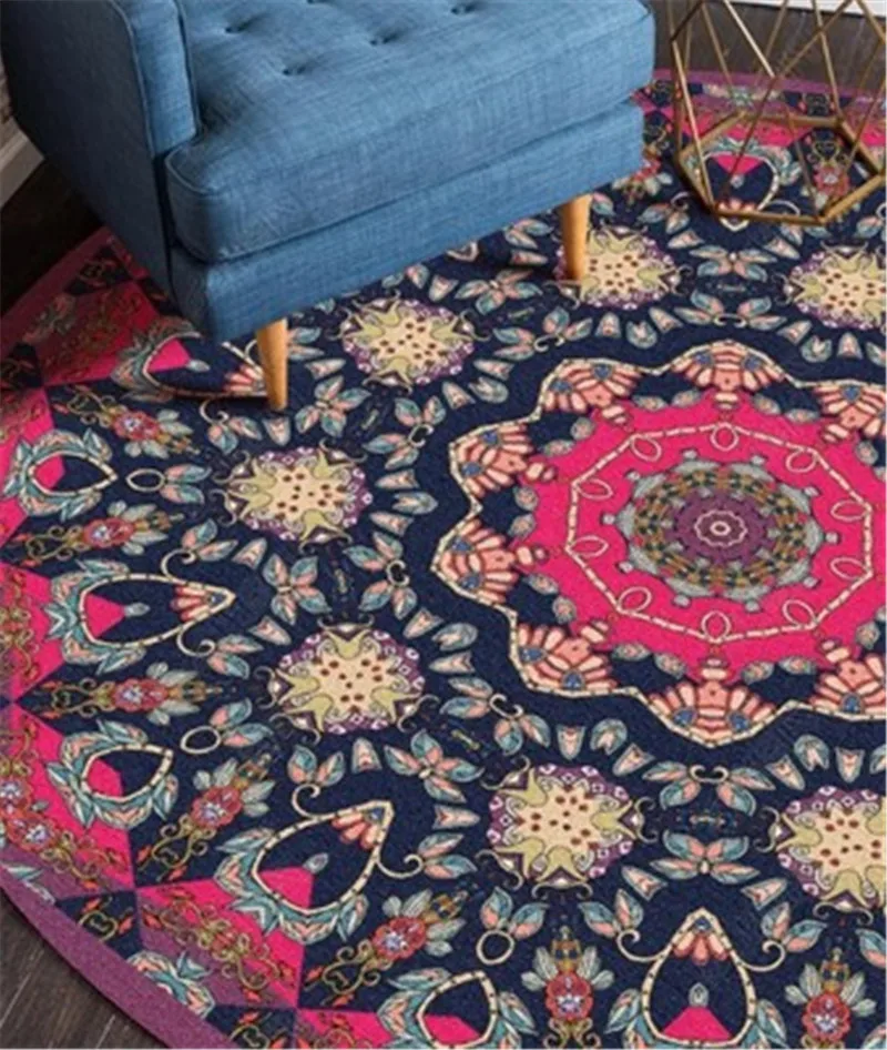 Круглый ковер Мандала 120 см персидский коврик для гостиной спальни большой марокканский нескользящий ковер для детской комнаты 60 см