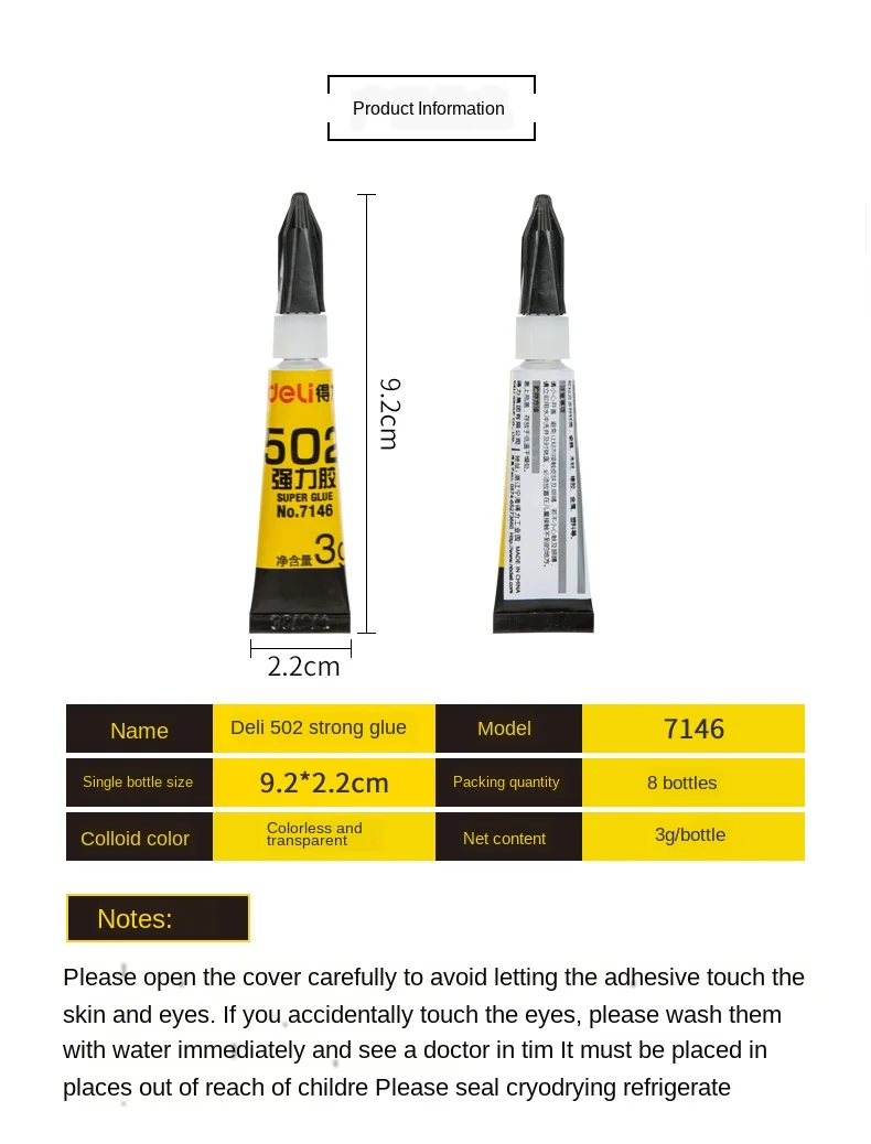 Название: 502 сильный клейСпецификация: 3g.Упаковка: 8 шт.
