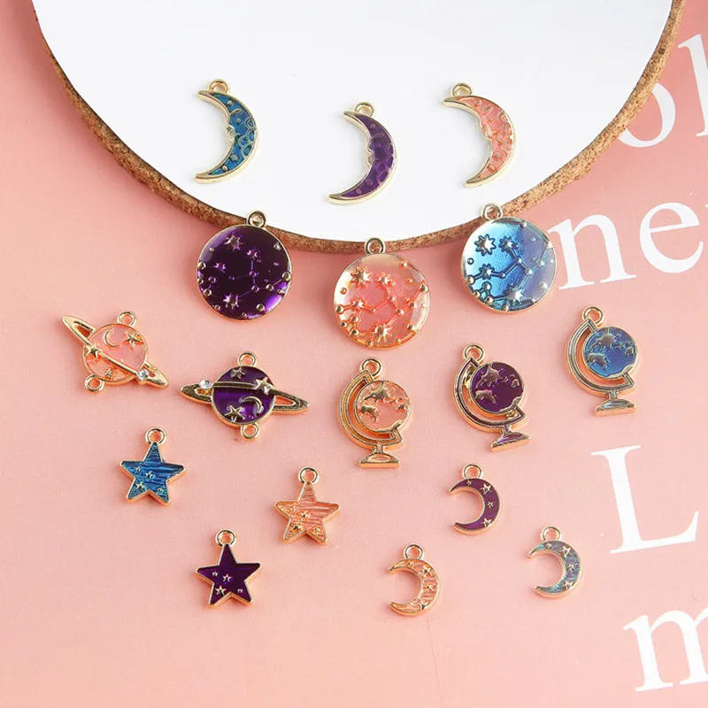 Название: космическая астральная луна из сплава Упаковка: 20 шт. Тип аксессуаров: аксессуары Материал товара: сплав Размер: глобус: 11*17 мм Планета: 14*19 мм Круглое звездное небо: 14*17 мм Большая Луна: 9*17 мм Маленькая Луна: 7*11 мм Маленькая звезда: 9*12 мм