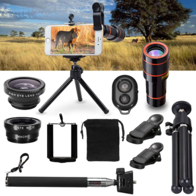 Селфи-Палка с объективом для камеры телефона 12X, штатив с дистанционным управлением по bluetooth, все в 1