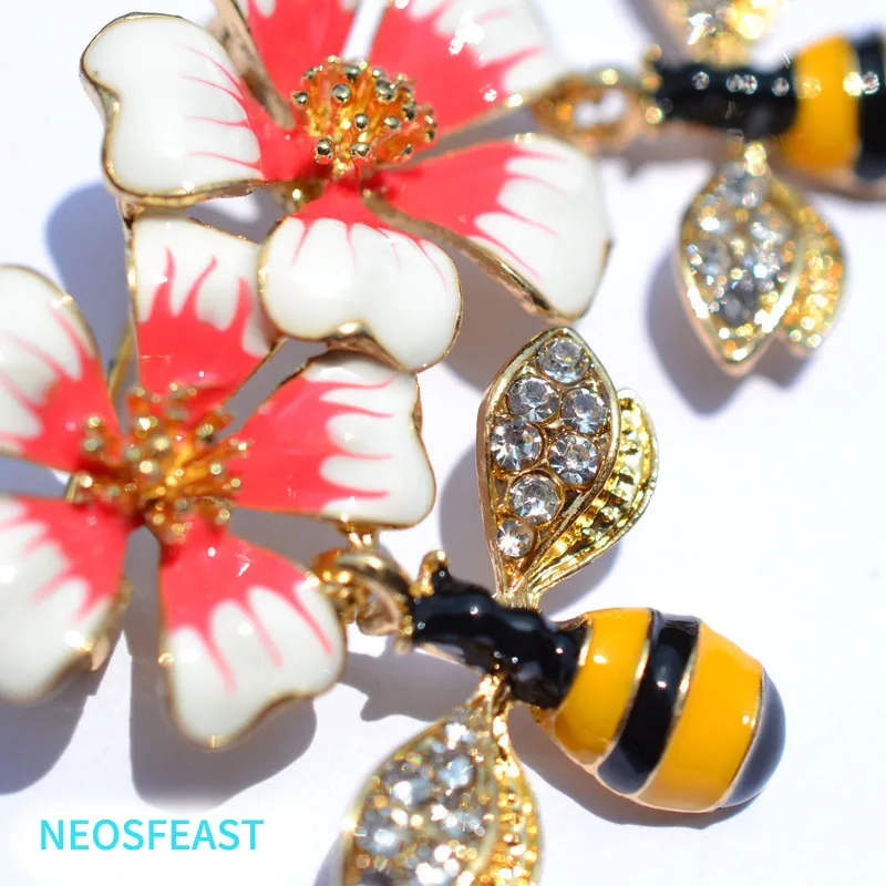 Flower Enameled Breast Cute Pin Bee Brooch for Women Gold Color Rhinestone Insect Brooch Coat Garments Lady Gift Fashion Jewelry Usage:match your scarf, hat, bag or daily dress. Fashion for casual, party and formal occasions Material:Alloy Package:product in 1 bag and 1 card. Size Height 40MM Wide 48MM Thickness 12MM