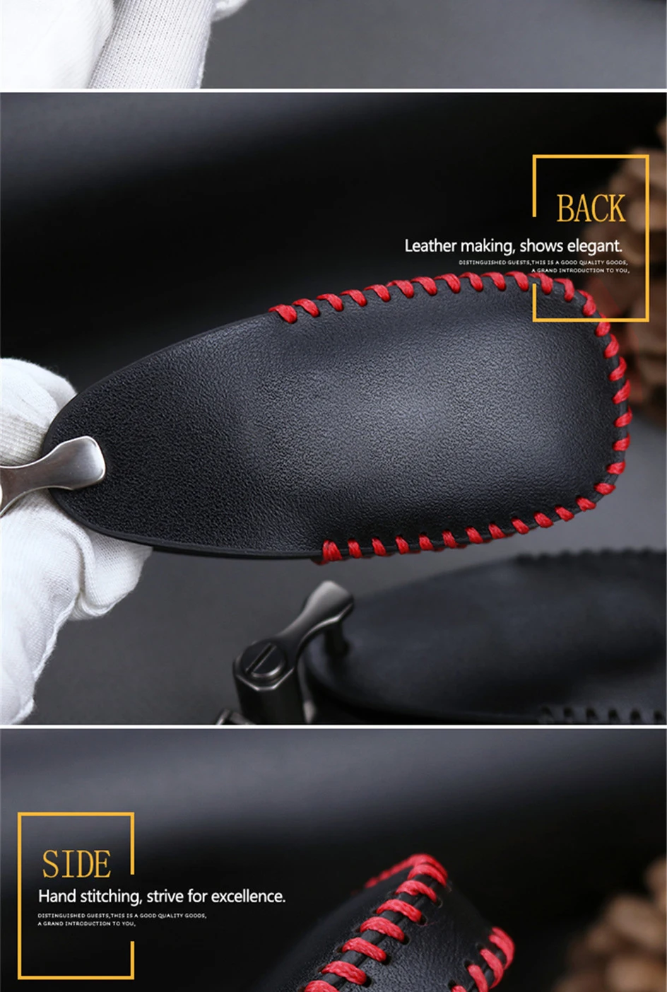 Примечание: 1. Пожалуйста, внимательно сравните ваш ключ с изображением продукта, чтобы убедиться, что этот чехол для ключа автомобиля полностью подходит для вашего ключа. 2. Кожаный брелок Модный чехол для ключей. 3. Процесс шитья вручную для автомобильного ключа из натуральной кожи чехол.