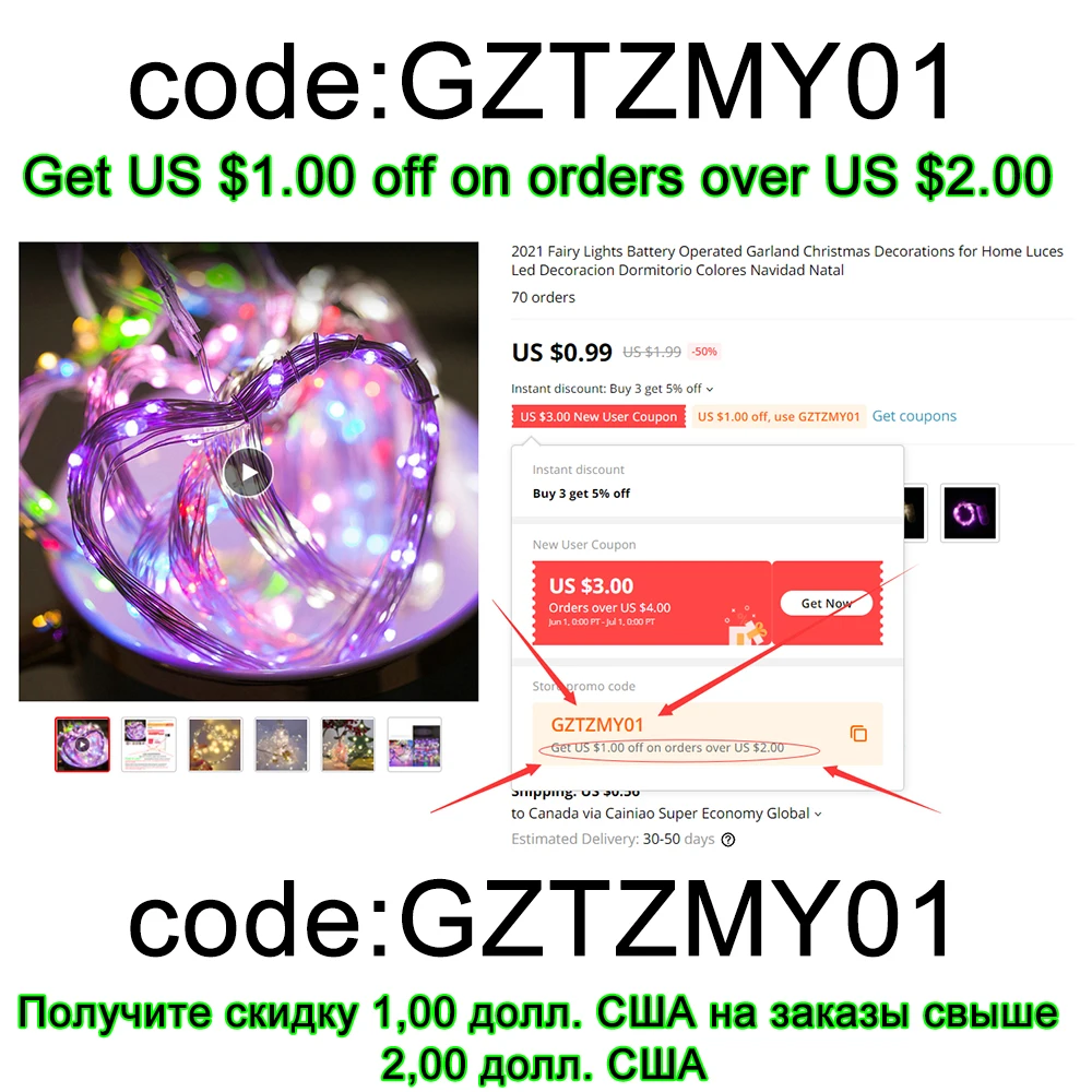 Скидка 1,00 долл. США при заказе на 2,00 долл. США