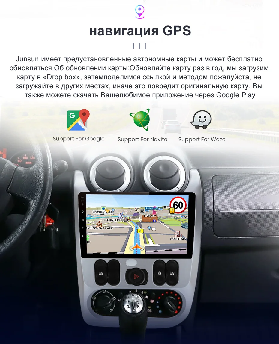 > Junsun V1 для Renault Logan 1 Sandero Лада Lergus largus Dacia 2010 2011 2012 2013 2014 2015 Функция 9 дюймов 2.5D емкостный Экран + 4 ядра 1,2 ГГц Процессор + DDR3 1 Гб (2 Гб опционально) flash + 16 Гб памяти (32 Гб опционально) + Встроенный Wi-Fi модуль (подключается к сети 4G опционально) + GPS навигации (карта бесплатного обновления, только в том случае, Junsun БРЭНД поддержка) + руль управления + Зеркало Ссылка + Bluetooth + Встроенный микрофон + FM/AM + RDS (опционально) + с пультом дистанционного управления USB ADAS DVR Функция + Европа DAB Функция + 1080P Vedio играть + HD 1024*600 + шин Система контроля давления > Серверный компьютером с экранным меню Язык Английский, русский, испанский, немецкий, итальянский, французский, арабский, Пособия по немецкому языку, иврит, китайский, эстонский, польский, филиппинский, финский, корейский, голландский, хорватский, итальянский, Латвийский, литовский, румынский, норвежский, польский, португальский, японский, шведский, тайский, турецкий, украинский, венгерский, словацкий, датский, словенский. > 24H * 7 Услуги поддержки На Junsun, наша цель состоит в том, чтобы держать прилагаем все усилия, чтобы сделать инновационное оборудование и программное обеспечение Автомобильный мультимедийный плеер радио дать вам, что по заказу покупателя. Мы предлагаем вам понравилась эта игра есть много для прошивки, программное обеспечение, GPS навигационные карты бесплатно.