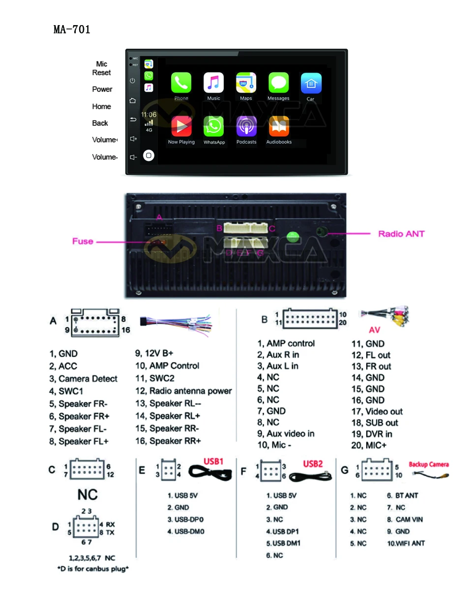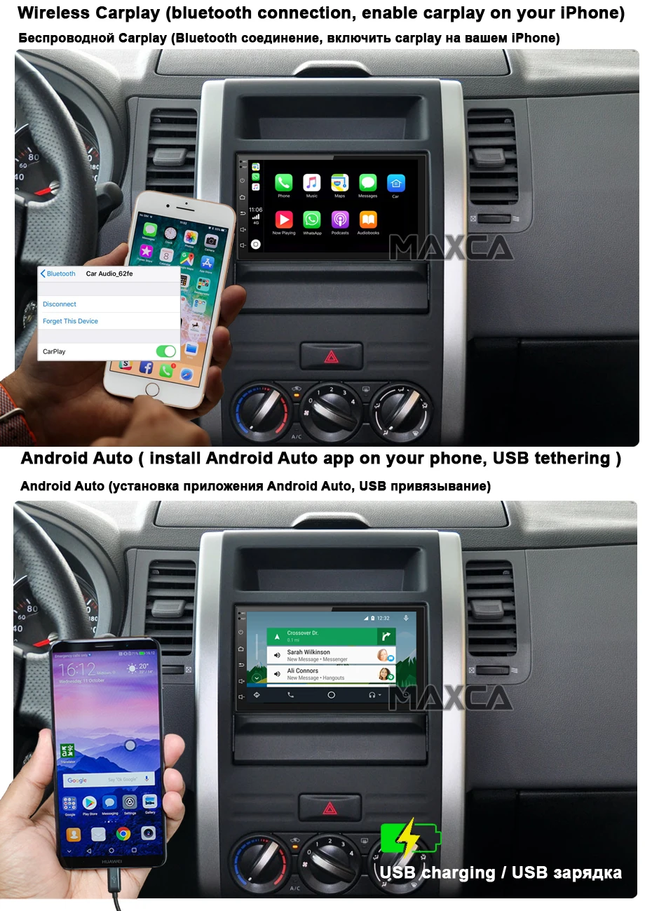 MAXCA 7 дюймов 2 din беспроводной Carplay радио для Nissan Sunny Juke Tiida Almera Qashqai Xtrail Авто Carplay плеер