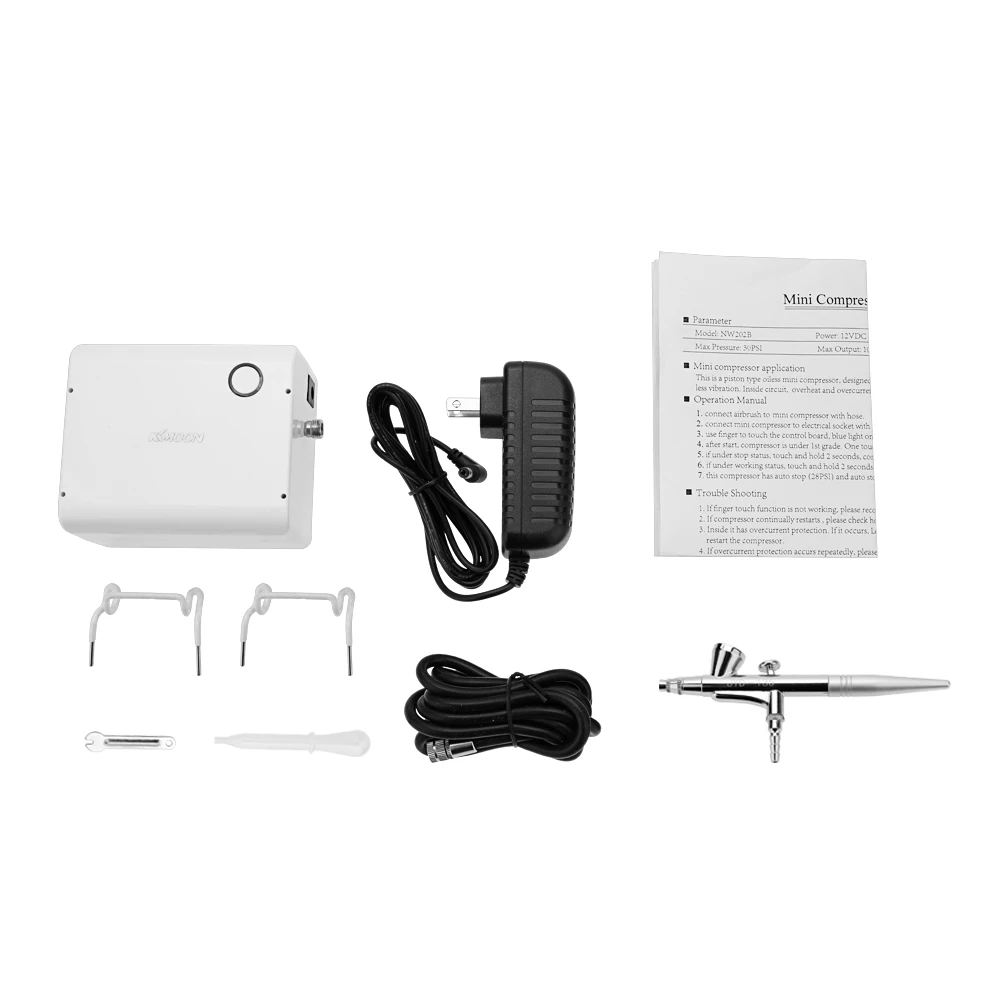 Этот мини-компрессор использует специальную конструкцию без масла. Это не масло делает среднюю передачу не загрязненной. Этот профессиональный комплект воздушного компрессора airbrush широко используется в производстве моделей, украшении тортов, татуировках, Нейл-Арте и т. д.