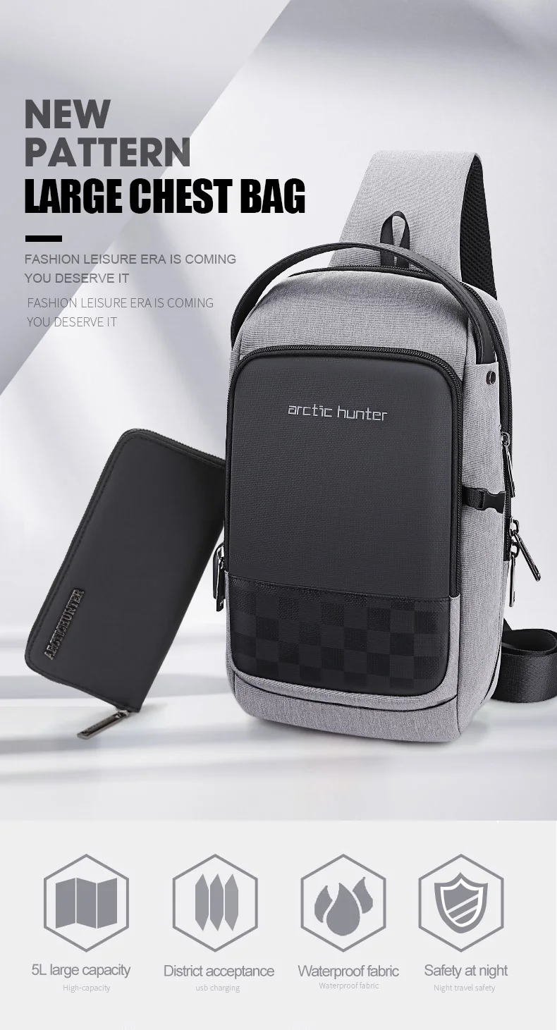 ARCTIC HUNTER Мужская многофункциональная сумка через плечо для отдыха на открытом воздухе водонепроницаемая Противоугонная сумка на плечо Мужская короткая нагрудная сумка