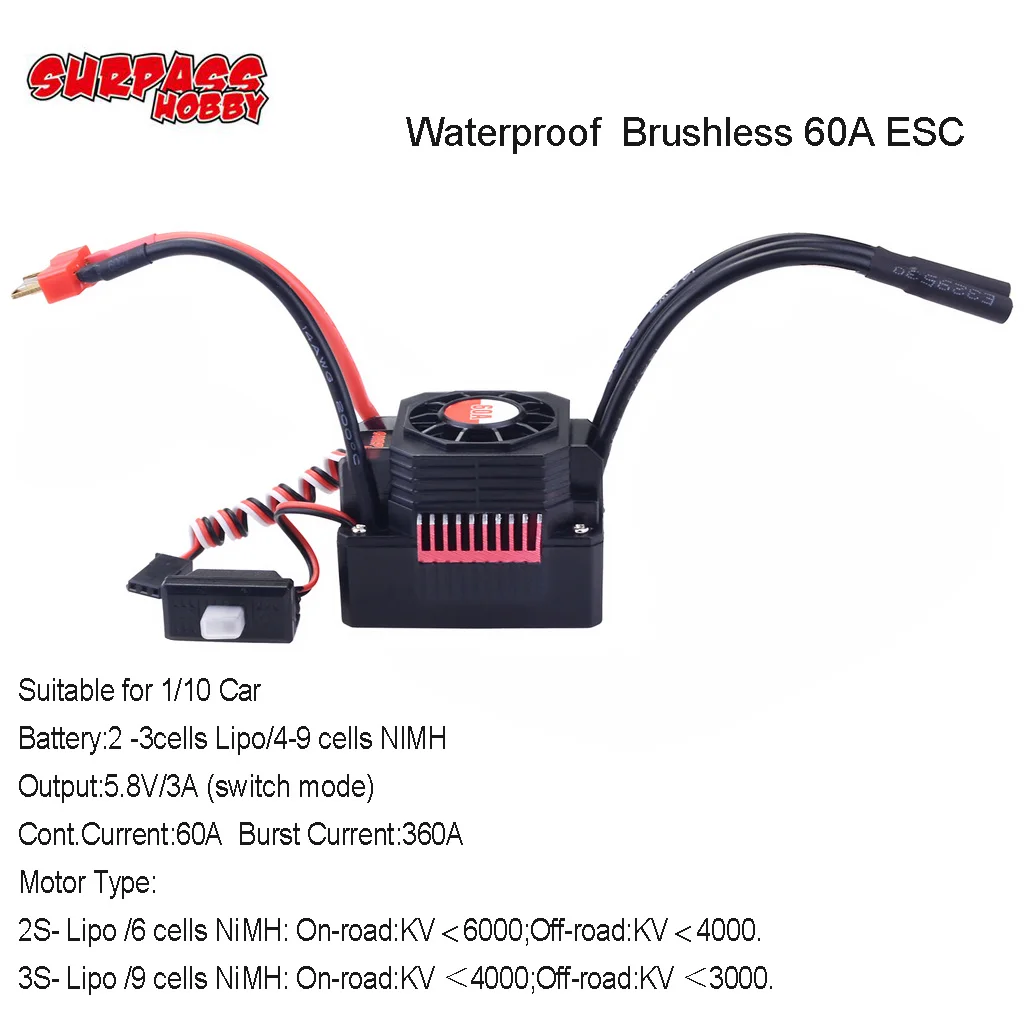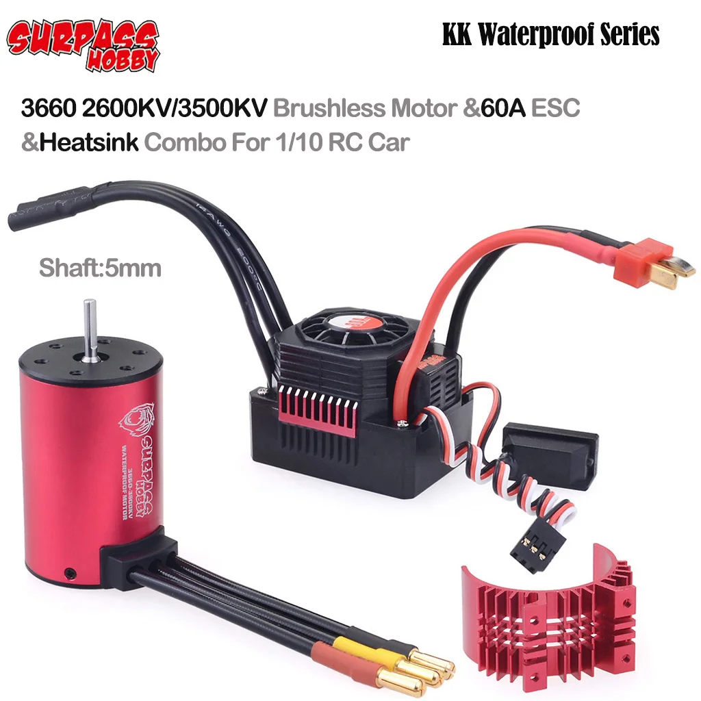 SURPASS HOBBY KK Водонепроницаемая серия 5 мм 3660 2600KV 3500KV бесщеточный двигатель и 60A ESC с радиатором комбо для 1/10 RC HSP HPI SCX10 D90 внедорожный Внедорожник Багги грузовик автомобиль Особенности двигателя: 1,4 Полюс 12 слотов с высоким крутящим моментом дизайн двигателя. 2.CNC обработанный алюминиевые заготовки 6061 T6 радиатор. 3. Высокая чистота медных обмоток увеличивает эффективность. 4. Большие подшипники ABEC5 с высокой скоростью вращения. 5. Универсальная посадка, подходит для всех 1:10 бесщеточные автомобили-multimounting система для винтов M3. 6. Прецизионный сбалансированный ротор, гладкость для лучшей надежности и максимальных оборотов в минуту. 7. Статор-Супер тонкий (0,35 мм) Ламинирование. Характеристики мотора: Бренд: SURPASS HOBBY КВ (об/мин/Вольт): 2600кв/3500кв опционально Ватт: 1200 Полюсы ротора: 4 Макс. Об/мин: 50000 Вал: 5 мм Длина удлиненного вала: 17 мм Диаметр: 36 мм Длина: 60 мм Разъем: 4,0 мм золото Вес: 230 г 3660 2600кв КВ (об/мин/Вольт): 2600кв Максимальное напряжение: <19 в Макс. Ампер: 63A 3660 3500кв КВ (об/мин/Вольт): 3500кв Максимальное напряжение: <13 в Макс. Ампер: 92A 60A характеристики ESC: Аккумулятор: 2 -3 ячейки Lipo/4-9 ячеек NIMH Выход: 5,8 в/3 А (режим переключения) Cont. Ток: 60A ток разрыва: 360A Сопротивление: 0,0007 Ом Тип двигателя (Бесконтактный бесщеточный двигатель): 2S Lipo/6 ячеек NIMH: 1. Дорожный: 3660 или меньший двигатель с кв <6000. 2. Внедорожный/багги/монстр: 3660 размер или меньший двигатель с кв <4000. 3S Lipo/9 ячеек NIMH: 1. Дорожный: 3660 размер или меньший двигатель с кв <4000. 2. Внедорожный/багги/монстр: 3660 размер или меньший двигатель с кв <3000. Размер ESC: 51*40*40 мм Вес: 125 г Посылка включает в себя: 1 * Водонепроницаемый 3660 бесщеточный мотор 1 * ESC 1 * руководство на английском языке
