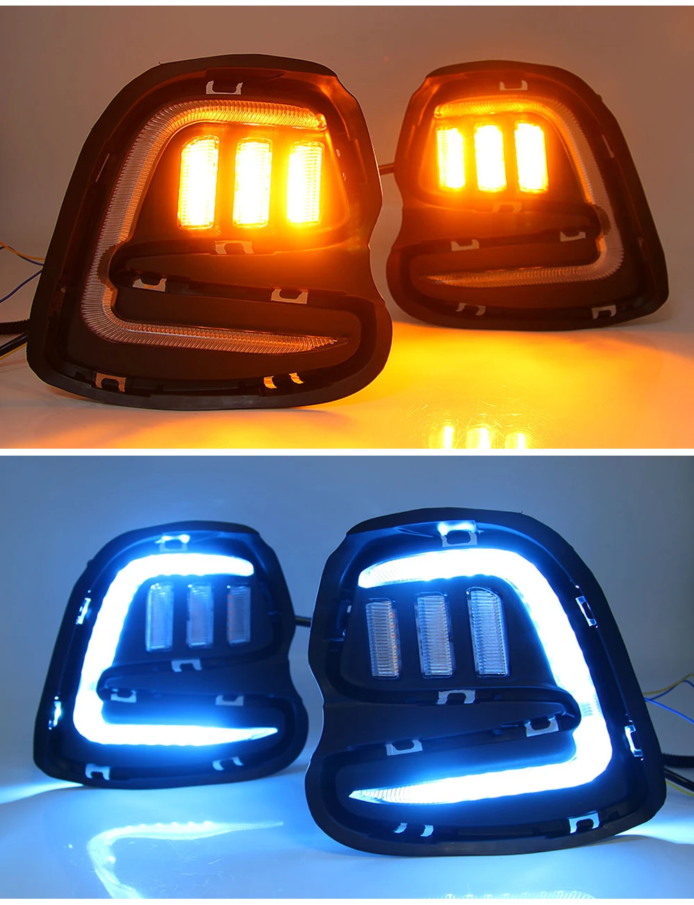 Белый и желтый имеет две функции: DRL и поворотники.Когда выПрямо за рулем, загорается белым. Когда вы включите его Мигающий Желтый светильник.Белый желтый синий имеет три функции, DRL и Сигналы поворота и ночной синий.Когда выПрямые, они светятся белым цветом. Когда вы поворачиваете его Мигающий Желтый светильник.На фаре он горит синим цветом.Подходит для: 2016-2019Особенности:100% новый и высокое качество100% Бренд новый высокое качество светодиодами высокой яркостиПродуманный и простой дизайн установкиЯркий светодиодный индикатор потребляет гораздо меньше мощности, чем стандартная лампа, поддерживая оптимальный светильникВодонепроницаемый отражатель для всех дорожных погодных условийЯркий светильник дневного света для обеспечения безопасности вожденияДлительный срок службы светодиодный срок службы до 50000 часов, минимальное обслуживание стоимостьУвеличьте общий внешний вид Экстра холодный белый луч улучшает общий внешний вид вашего автомобиляДневной ходовой светильник повышает безопасность во время вождения позволяет вашему vehicie быть замеченнымДополнительные расстояния. ЗначительноУлучшает время реакции встречных мотоциклистов в инциденте