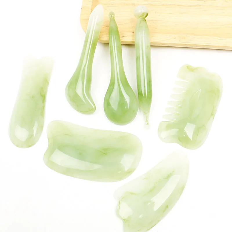 1. Мойте лицо с помощью нормальных средств для очищения. И высушите свое лицо полностью полотенцем. Массажер для лица с большим нефритовым рулоном, снизу вверх.