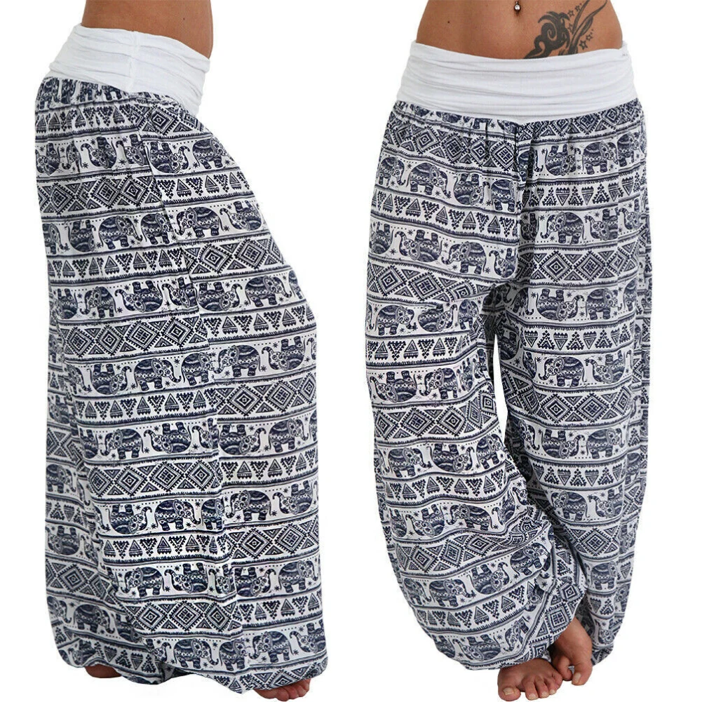 Женские богемные длинные штаны с принтом слона для йоги и низкой талией, Свободные мешковатые шаровары