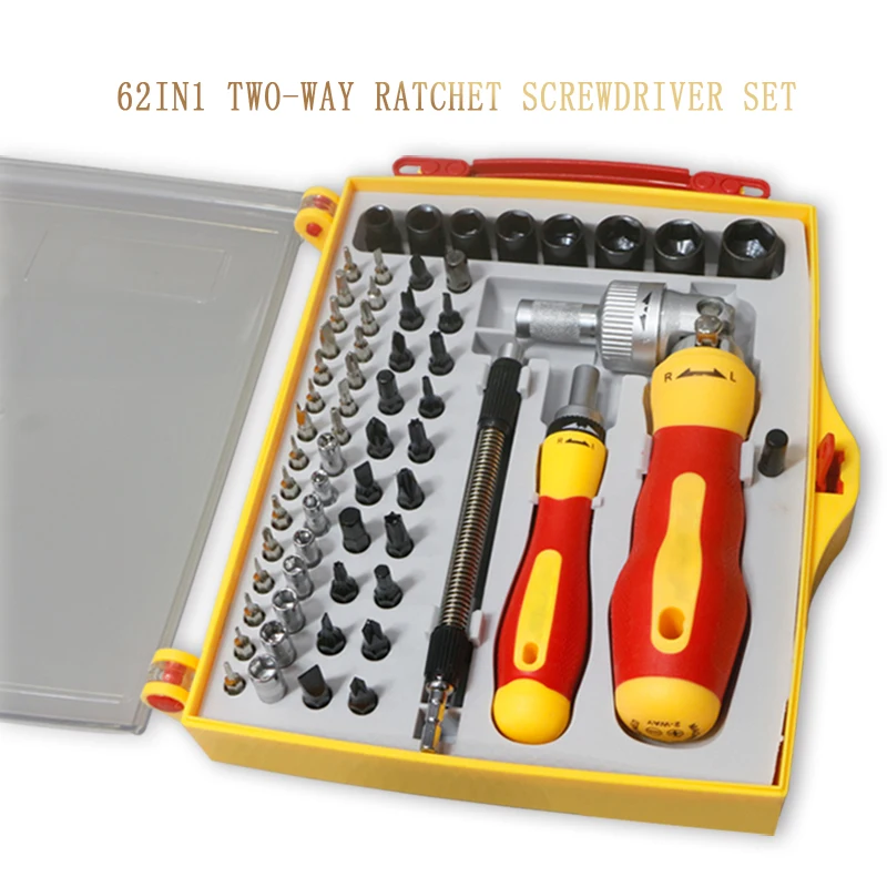 PARON 63 в 1 прецизионный храповик отвертка изолированный 50 CRV магнитные Биты Набор инструментов многоразрядный Набор отверток набор сверл