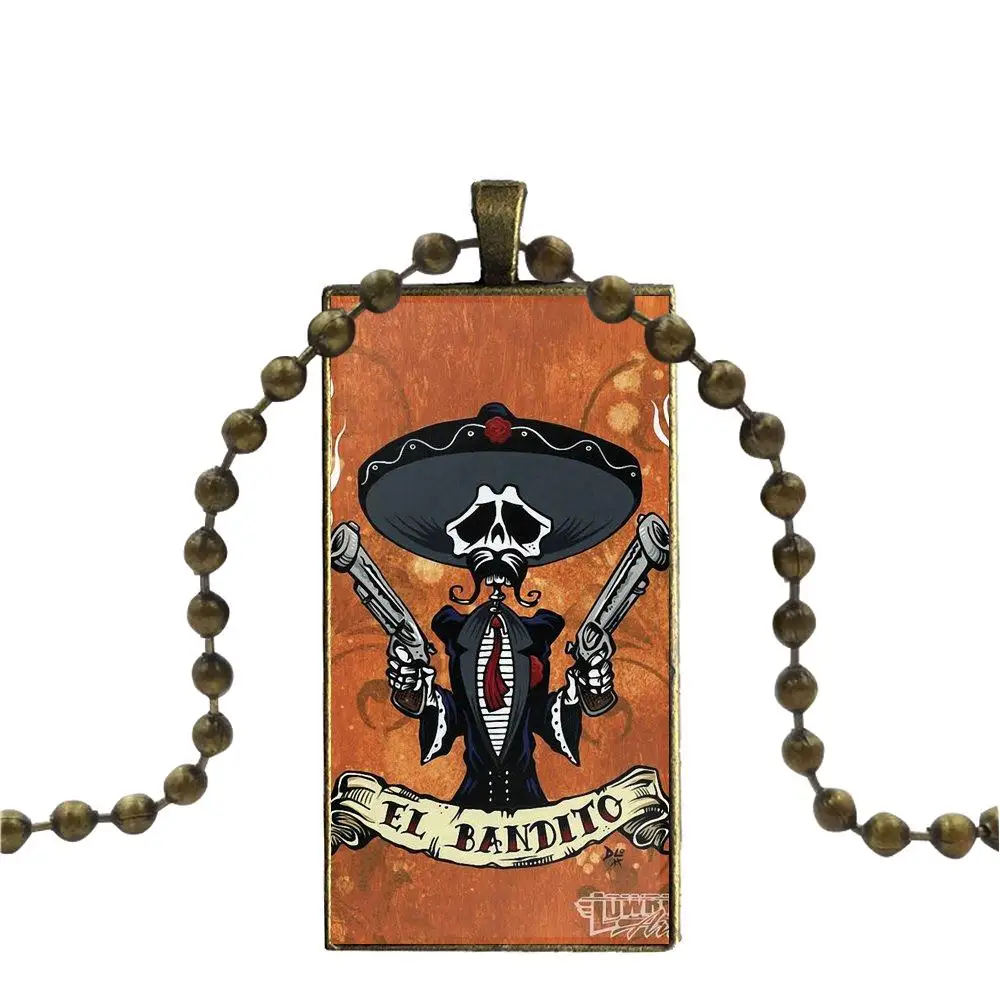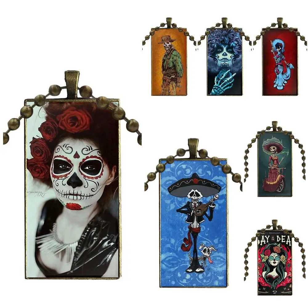 Для женщин дети Ариэль День мертвых старинные ювелирные изделия из бронзы из цветного стекла колье с кабошоном Подвеска длинное ожерелье с бруском прямоугольником