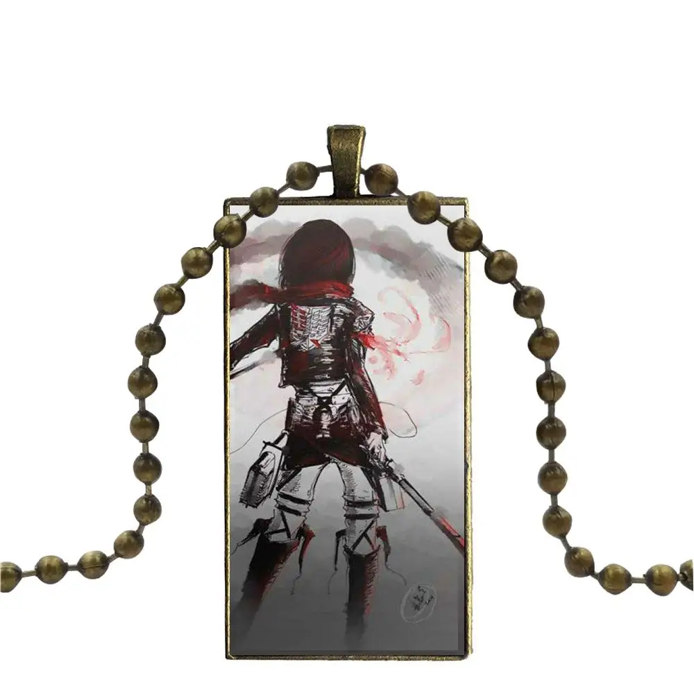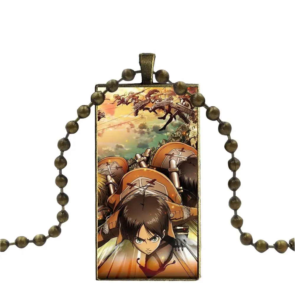 Аниме; обувь для косплея по аниме «атака на Титанов» скаутинга для женщин дети ожерелье с бронзовым покрытием стекло колье с кабошоном длинный кулон ожерелье с бруском прямоугольником