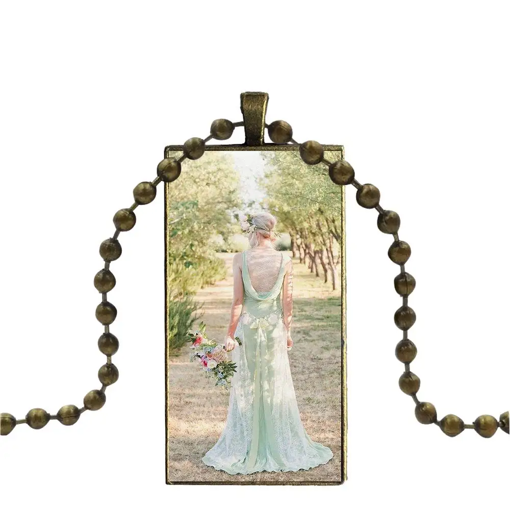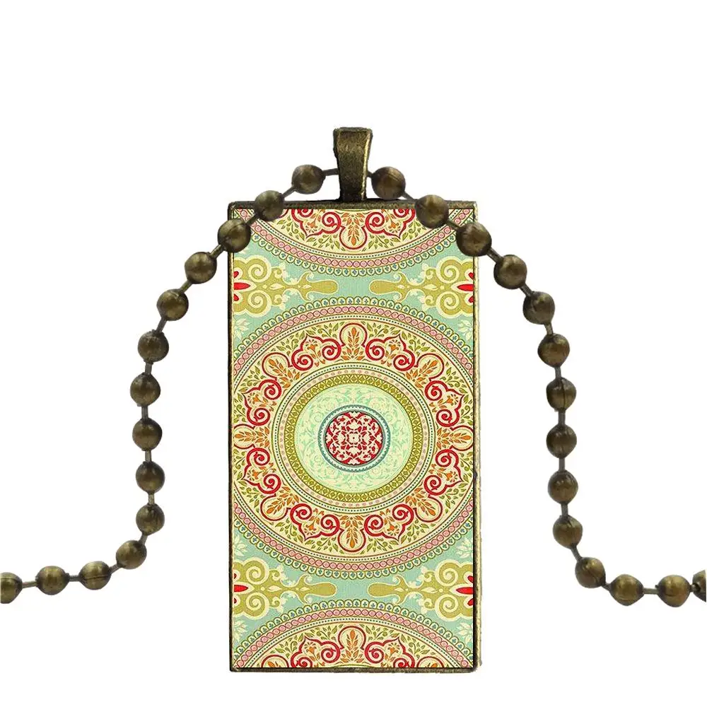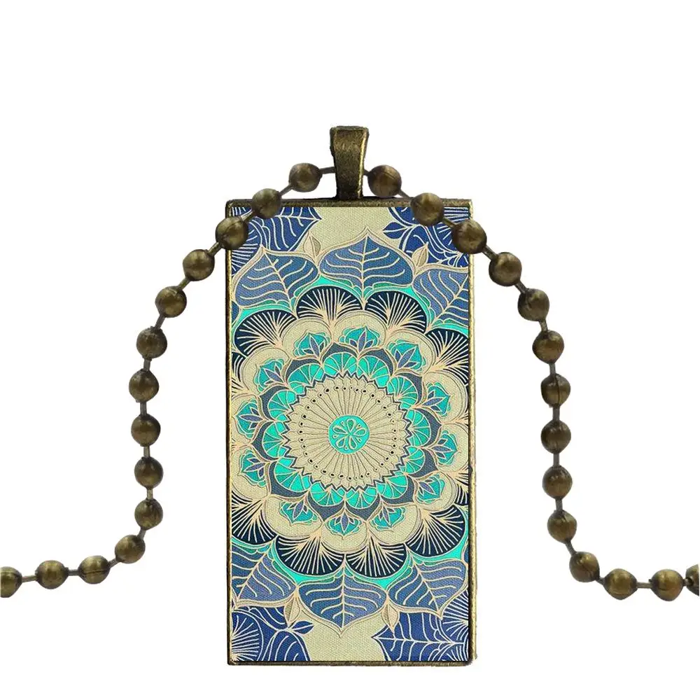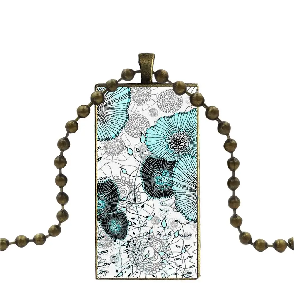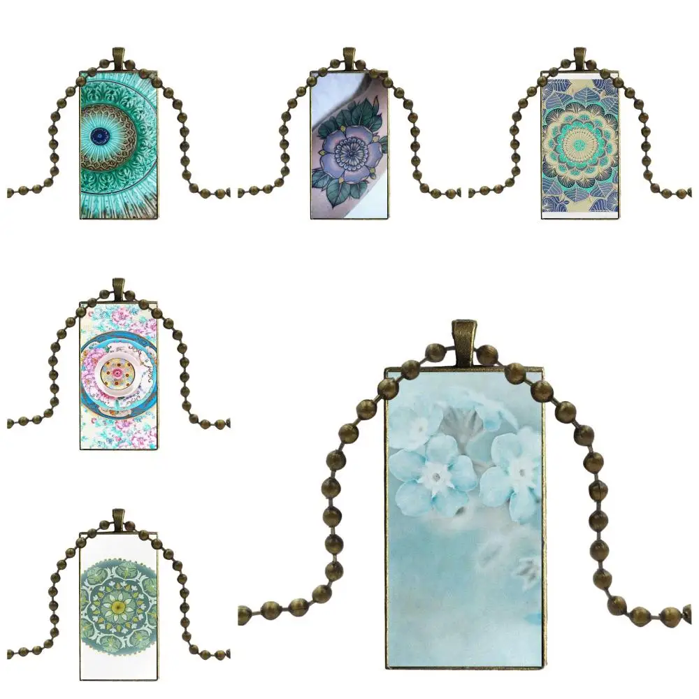 Для женщин ювелирные изделия пастельный мятный синий цветочный Мандала стеклянный кабошон кулон ожерелье прямоугольное модное ожерелье