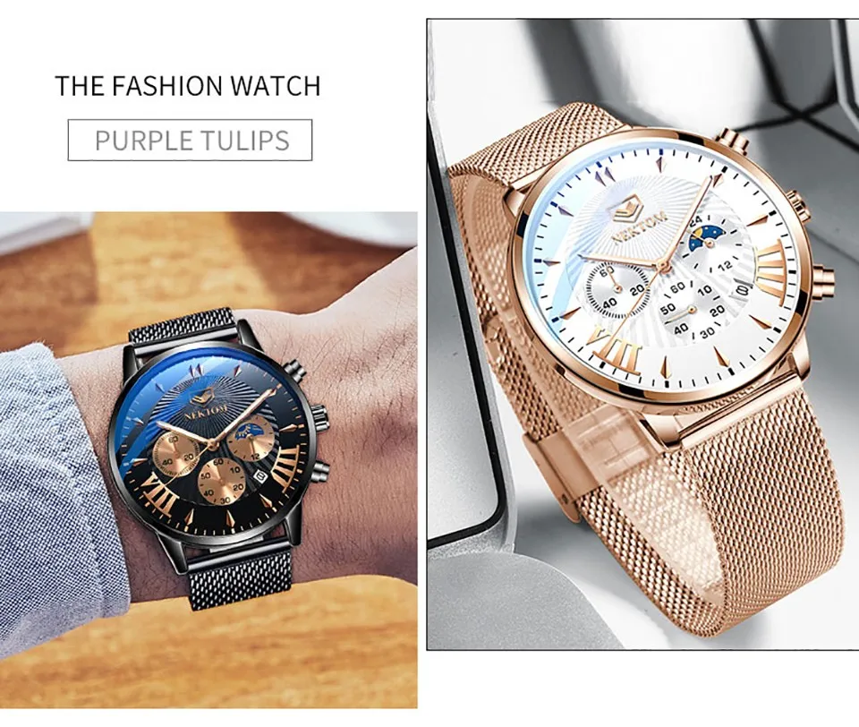 Спортивные часы Reef Tiger/RT для мужчин хронограф кварцевые с датой розовое золото со