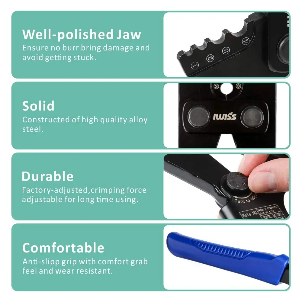 Инструмент для обжима проволочной веревки IWISS для алюминиевых овальных втулок, зажимных втулок, обжимных наконечников, зажимных втулок длиной от 3/64 до 1/8-15 дюймов