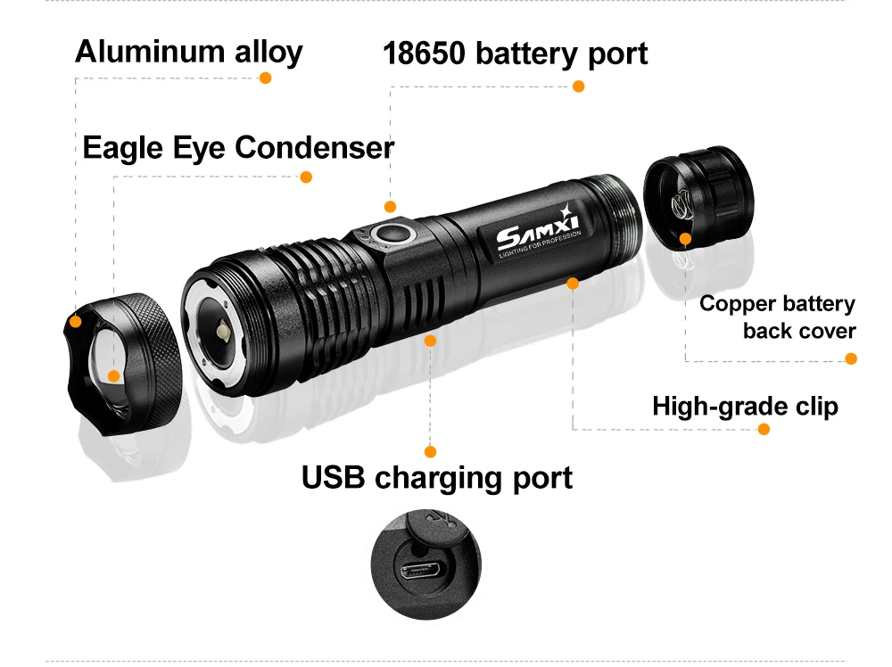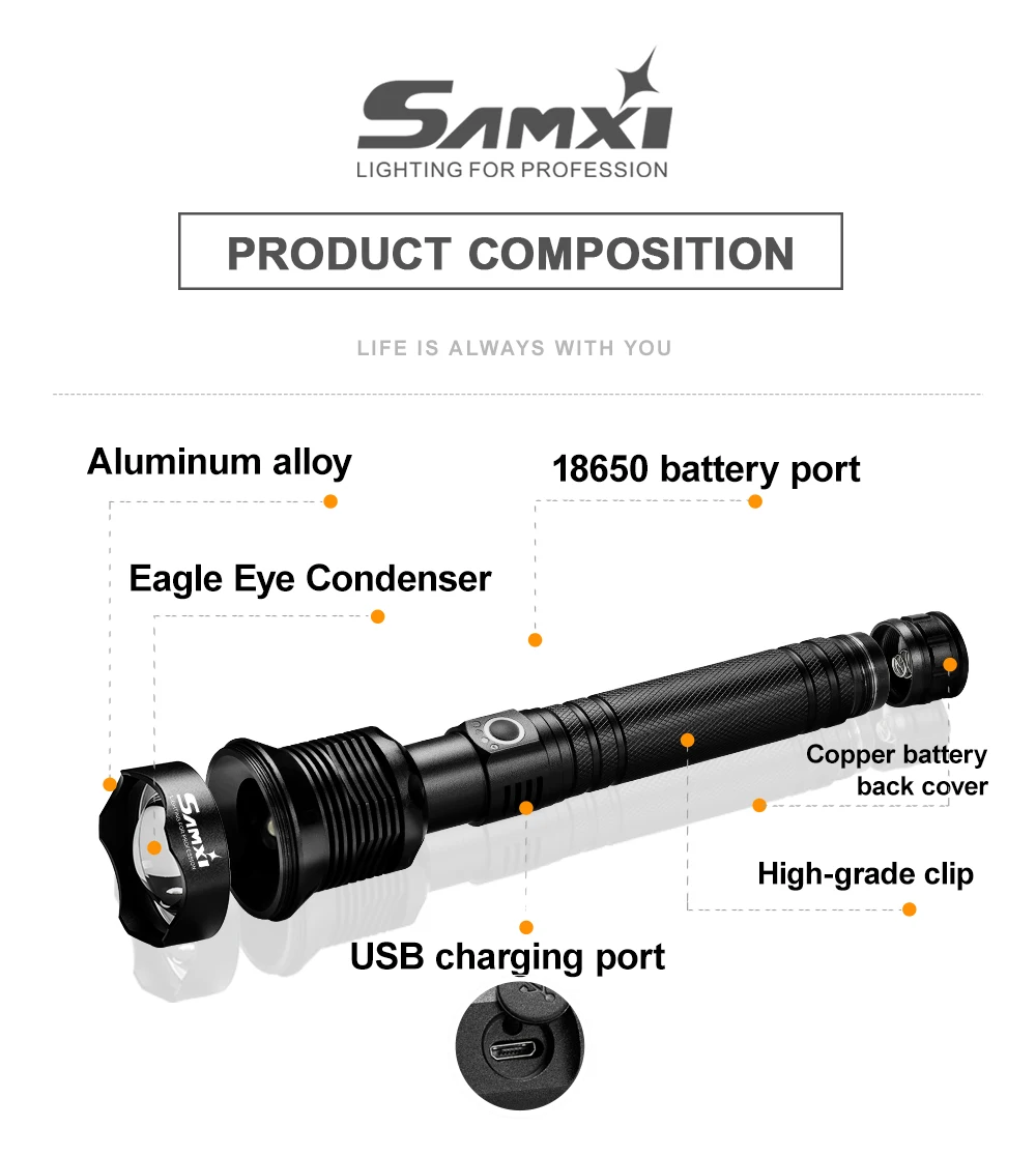 Wasafire Мощный тактический портативный фонарь телескопическая дубинка LED 18650 Лампы