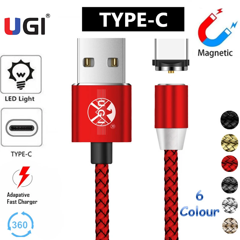 Магнитные кабели типа C с вращением UGI, кабель быстрой зарядки 2,4 А, зарядный кабель Micro USB 360 °, кабели для мобильных телефонов Xiaomi