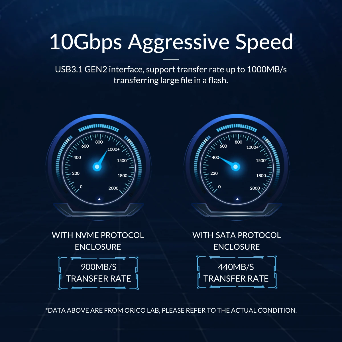 Совместимость с протоколами M.2 NVME и M.2 SATA, двойная производительность для всего одного корпуса.