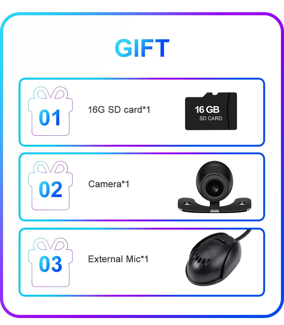 >>> У нас есть видеорегистратор для поддержки экрана головного устройства, может записывать состояние вождения. Видеорегистратор также имеет SD-карту 16 ГБ, поддерживает ночную версию, если вам нужен видеорегистратор, пожалуйста, нажмите на изображение и оплатите его.