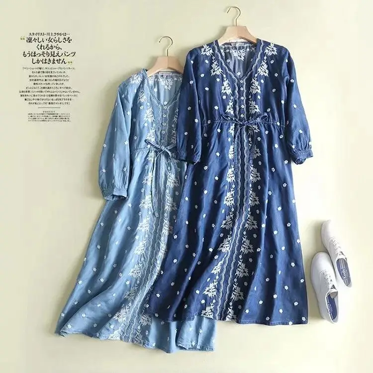 Женское винтажное богемное платье с v-образным вырезом и цветочной вышивкой размера плюс на осень 2020