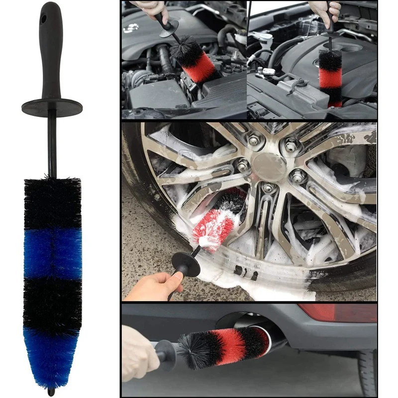7 шт. щетка для колес и шин, набор для детализации автомобиля, 17 дюймов длинная мягкая щетка для колес 5 деталей для мытья автомобиля Комплект для мытья автомобиля для очистки грязных шин и высвобождения грязи и дорожной грязи, короткая ручка для легкой очистки.